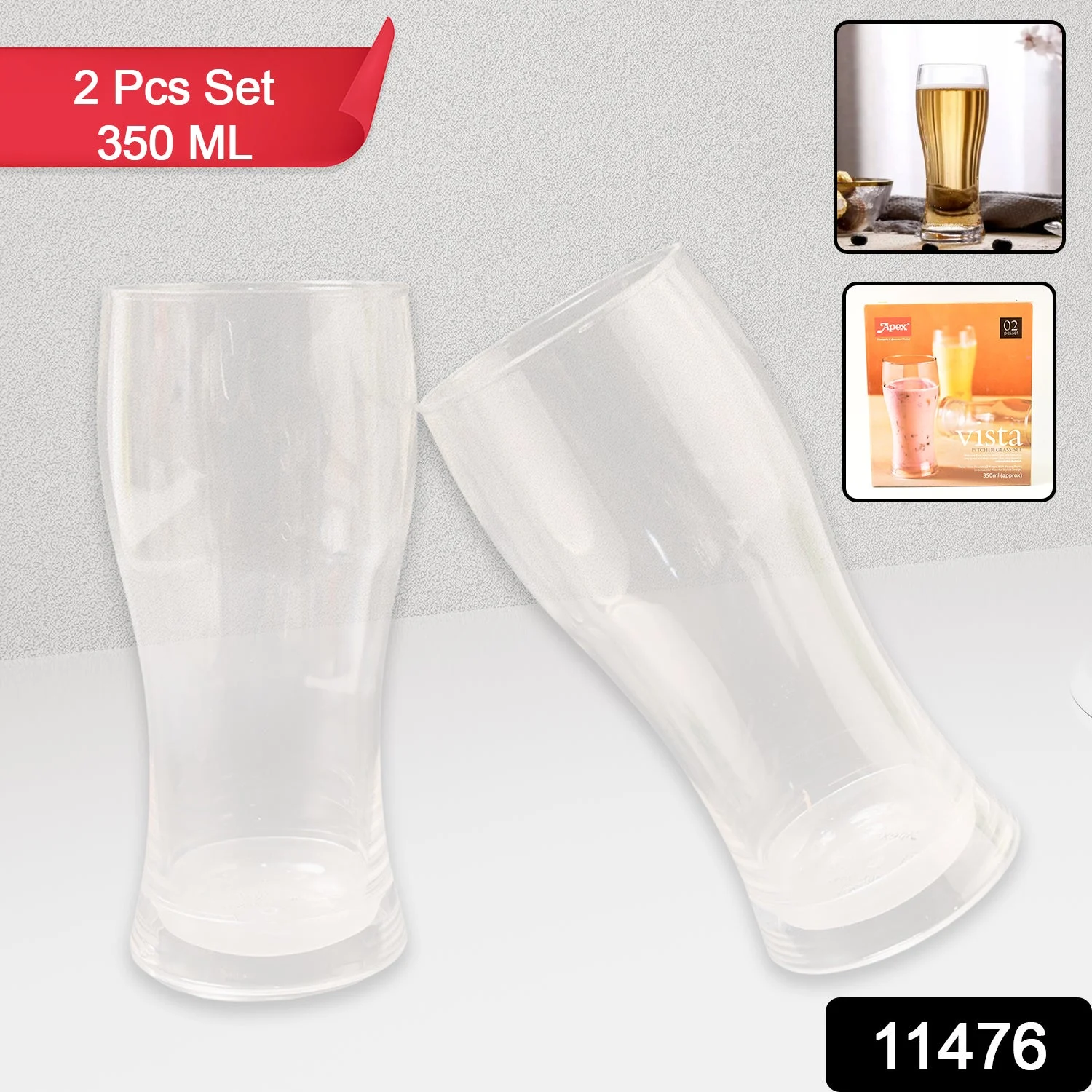 Vista Unbreakable Pitcher Glass Set – 350 ML (Approx) | 2-Piece Crystal Clear Plastic Tumbler Set for Water, Juices, Shakes & Beverages | Premium Drinkware for Home, Hotels, Travel & Parties