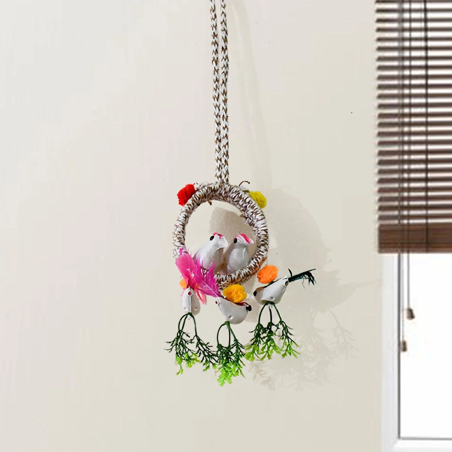 Home Decoration Bird Nest Decor Lovely Beautiful Artificial Birds Jute Nest Hanging for Balcony and Garden Decoration |Home Decor Wall Hanging Decorative Showpiece (1 Pc / Mix Color)