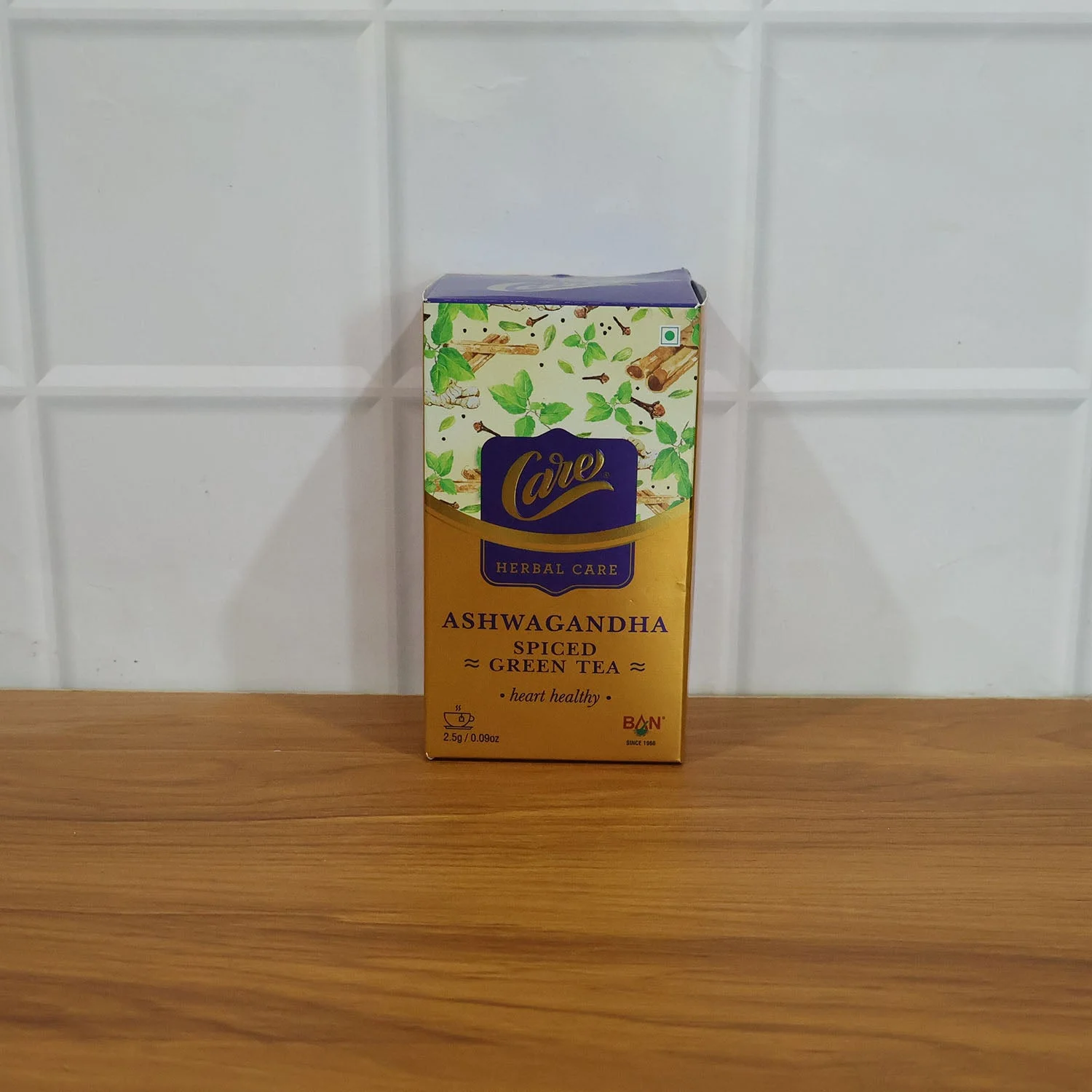 Experience a refreshing blend of traditional herbs and aromatic spices with this Ashwagandha Spiced Green Tea. Crafted to combine the goodness of green tea with the calming properties of ashwagandha, this herbal infusion offers a soothing and revitalizing tea experience. The carefully balanced spice blend enhances flavor while supporting overall wellness and daily relaxation. Ideal for enjoying in the morning or evening, it delivers a warm and comforting cup with a naturally refreshing taste. A perfect addition to your daily routine for mindful sipping and balanced living.