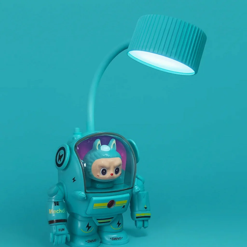 astronaut desk lamp, robot table lamp, pencil sharpener lamp, kids study lamp, LED desk light, rechargeable table lamp, study desk accessories, kids room lamp, cute desk lamp, multifunction desk lamp, USB lamp, desk organizer lamp