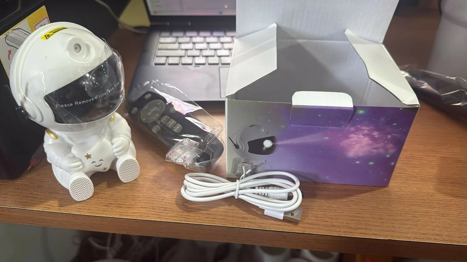 The projector comes with a remote control that allows you to adjust brightness, switch colors, control rotation, and choose different nebula modes effortlessly.