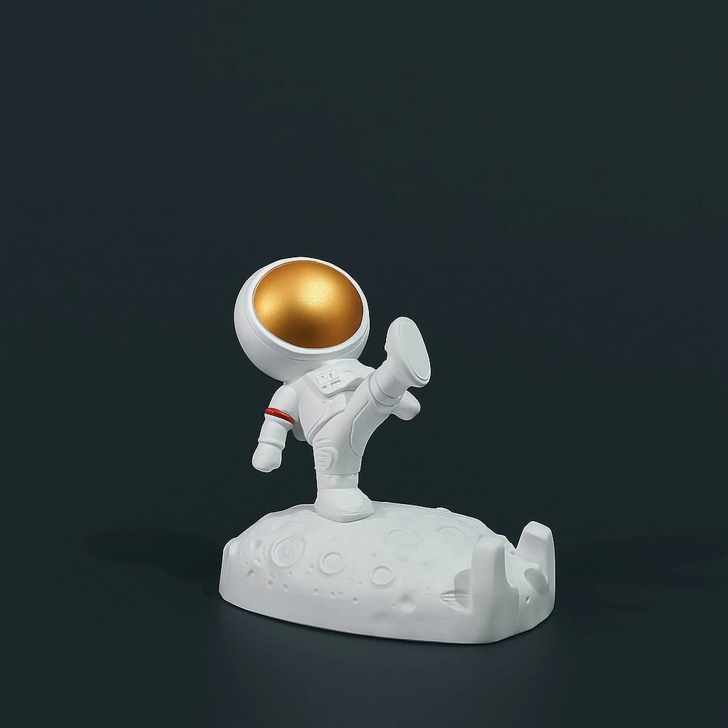 astronaut phone holder, astronaut mobile stand, mobile stand for desk, cute phone holder, resin mobile stand, astronaut decor gift, moon surface phone stand, smartphone holder astronaut, space theme accessories, office desk mobile stand, study table phone holder, creative phone stand gift, gold helmet astronaut stand, decorative mobile holder