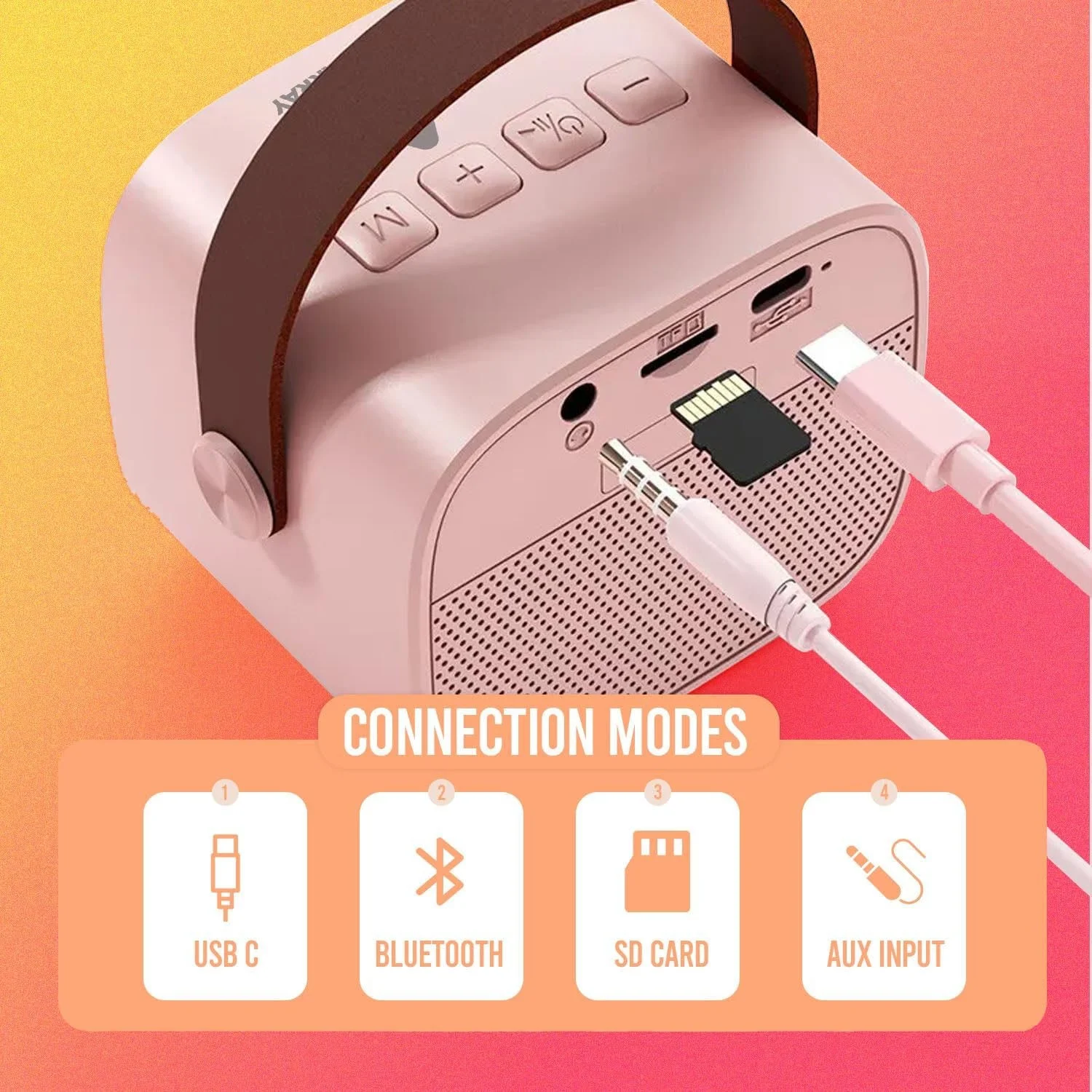 Set Includes: Speaker, Wireless Microphone, Charging Cable