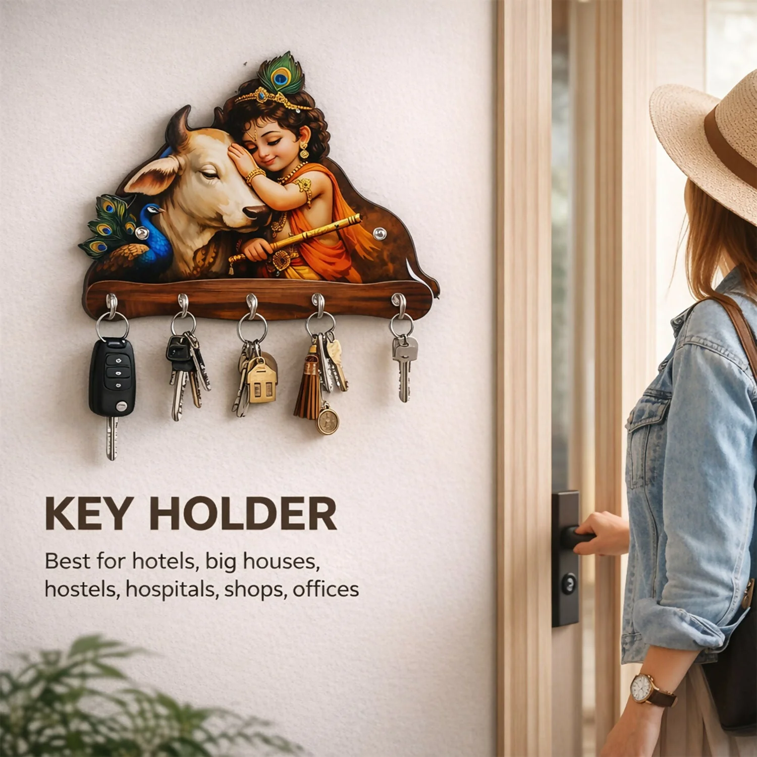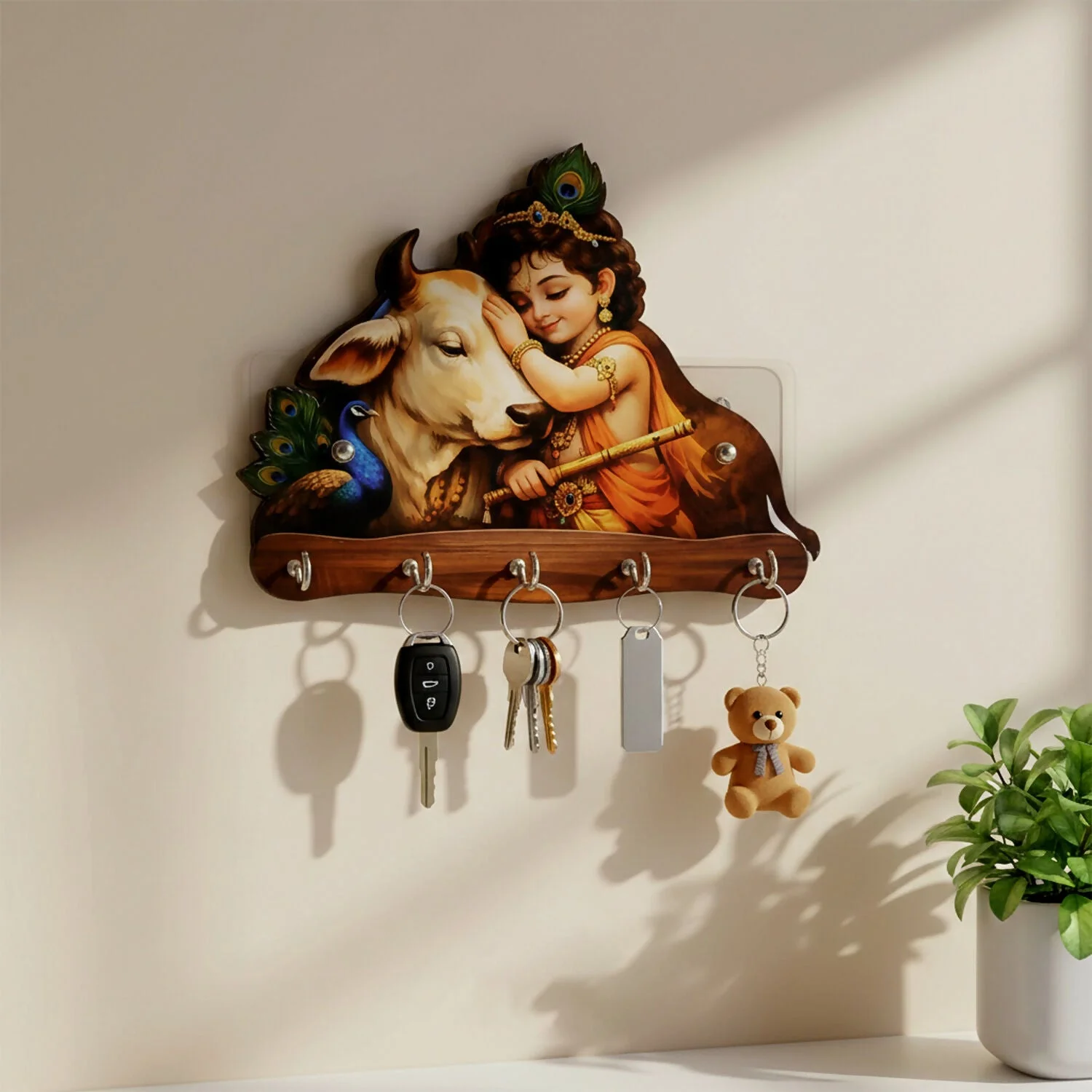 Be the first to review Baby Krishna with Cow Wooden Wall Key Holder – 5 Hooks Organizer!