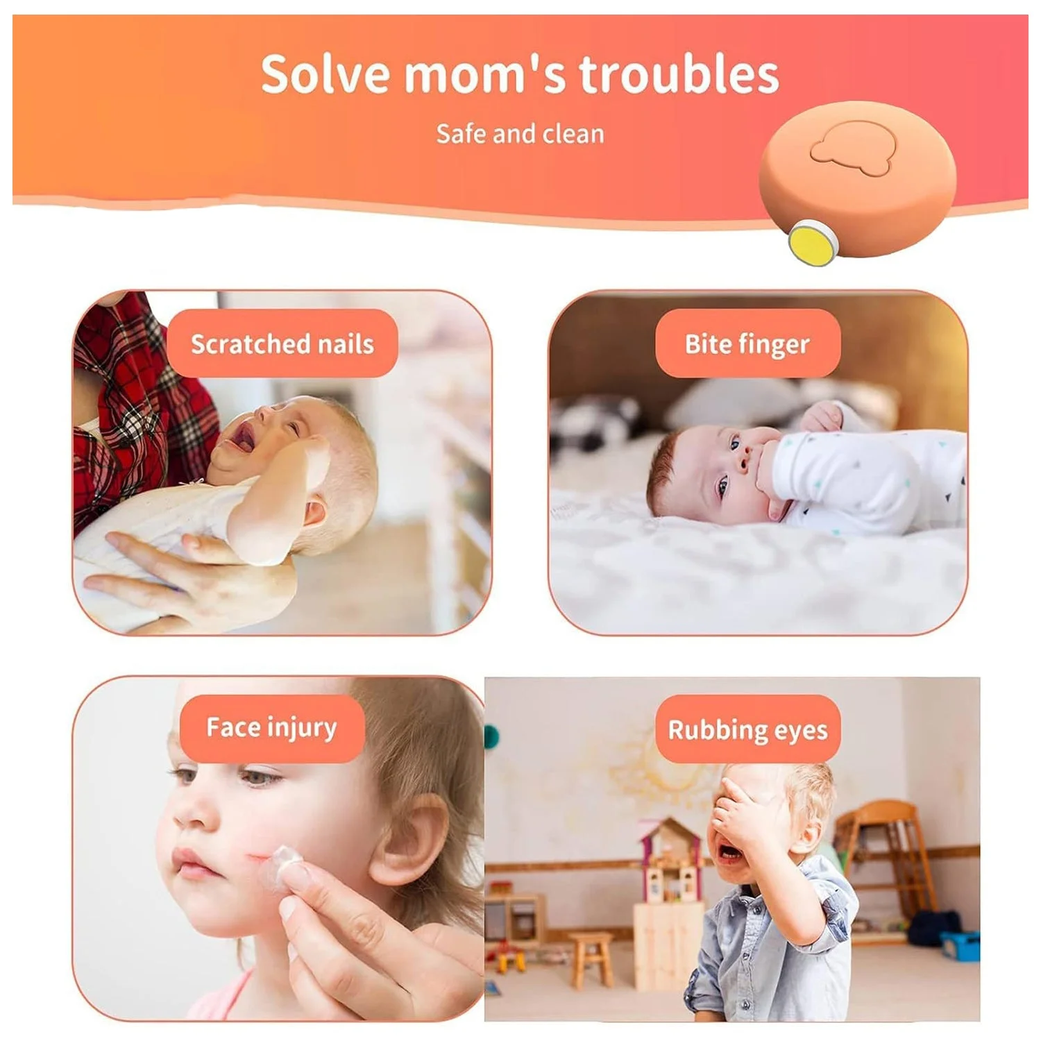 Gentle electric nail trimmer specially designed for baby’s delicate nails.