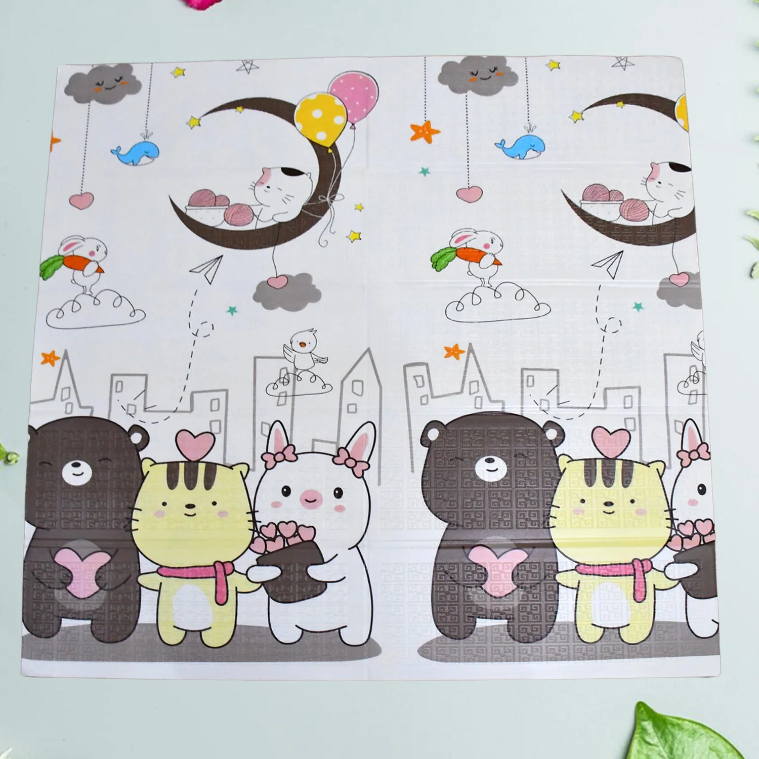- extra-large play mat playmats folding baby crawling mat kids puzzle playmat foam square tiles floor mats carpet pad is an excellent alternative to blankets and hard floors, foam cushion play mat foldable waterproof floor playmats for crawling is suitable for indoor, outside, travels, picnic, kid’s playroom, nursery, nursery rug/floor mat, yoga mat, baby activity gym, play gym, newborn baby room, bedroom, living room, kindergarten, etc.