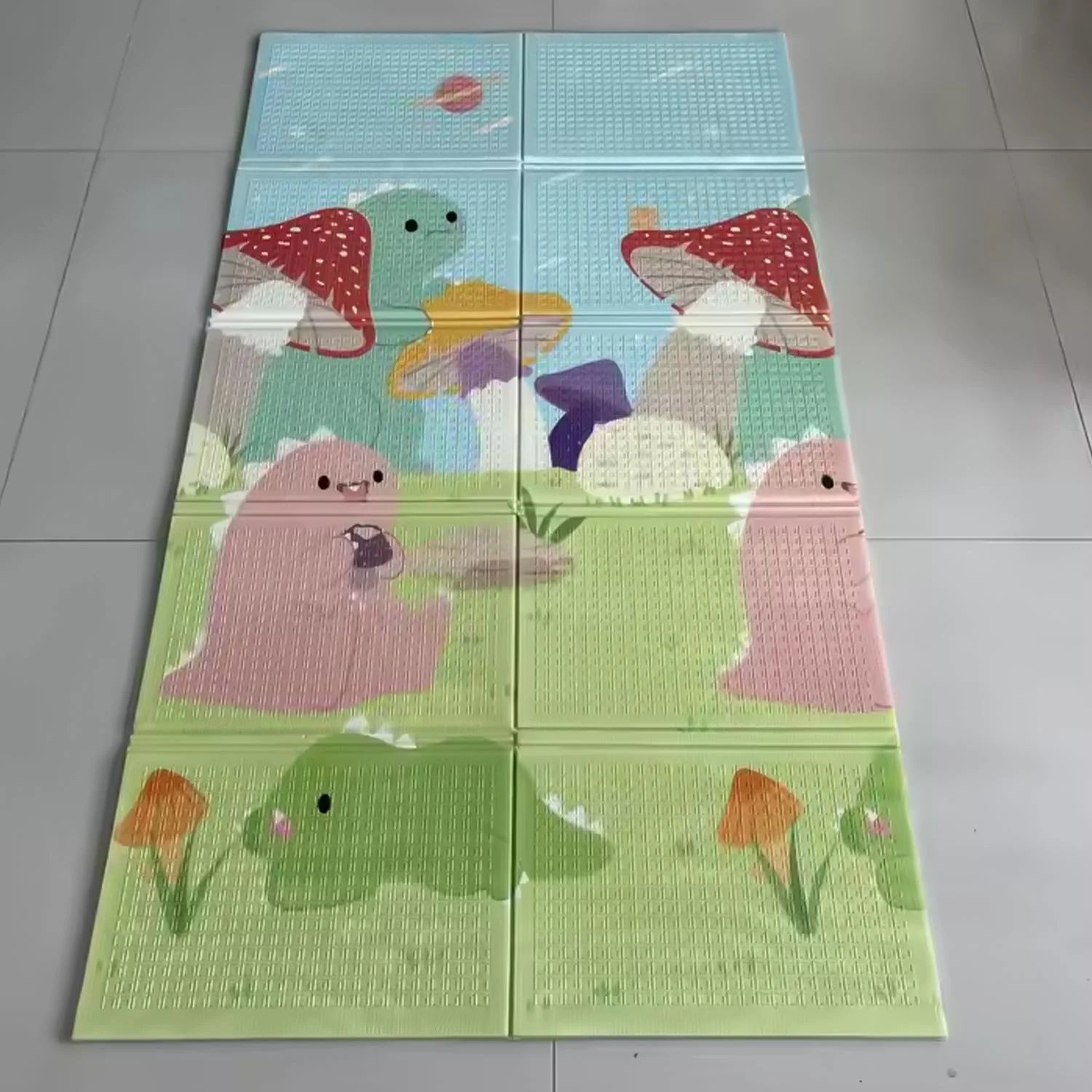 - baby mat crawling playmat thick foam tiles Oversize foam floor tiles Kid's puzzle exercise play mat is made of the world's most safe eco-friendly XPE material, non-toxic, BPA free, phthalates, latex, lead and formamide. Inner of folding reversible baby foam playmat is high-density XPE layer is of 3D beehive structure, foldable baby playmat with delicate independent bubbles absorb shock to protect infants.