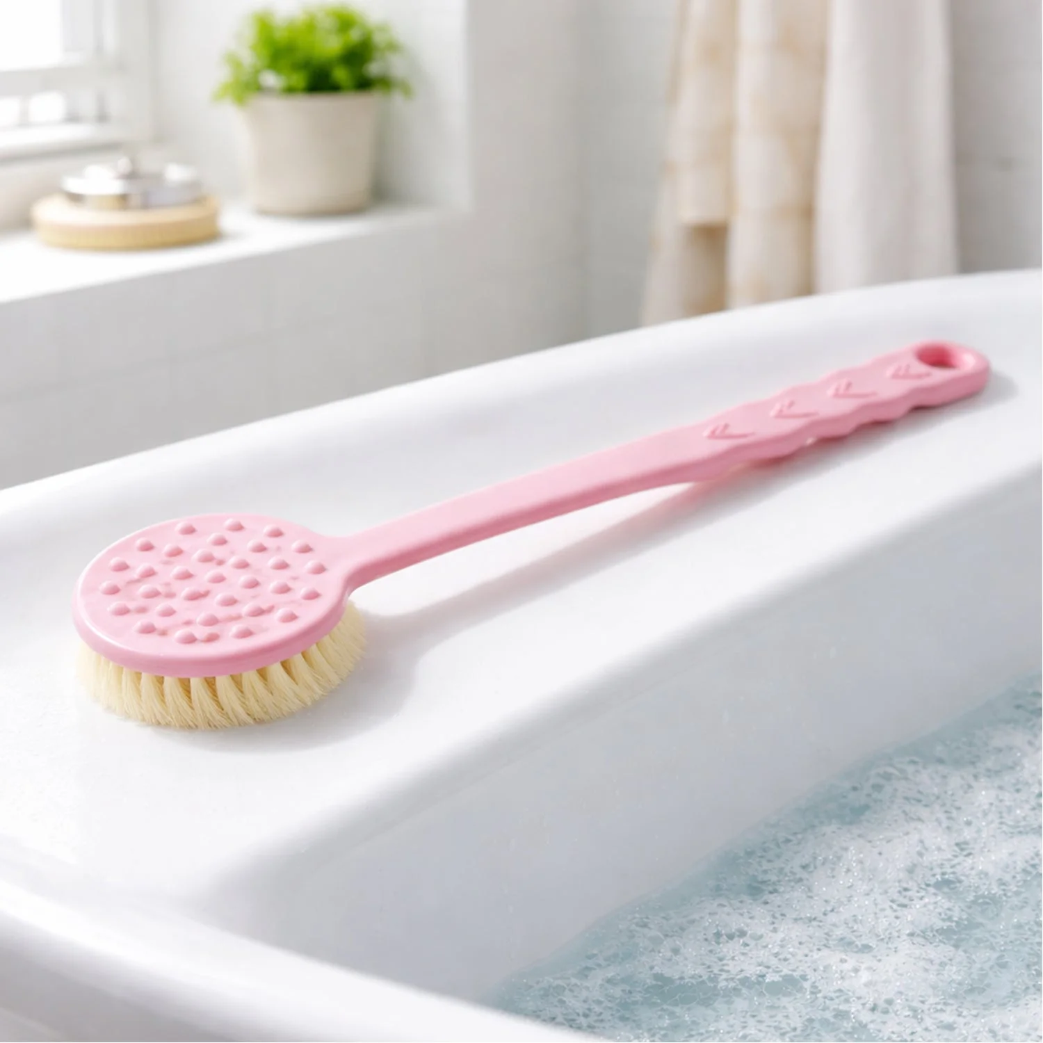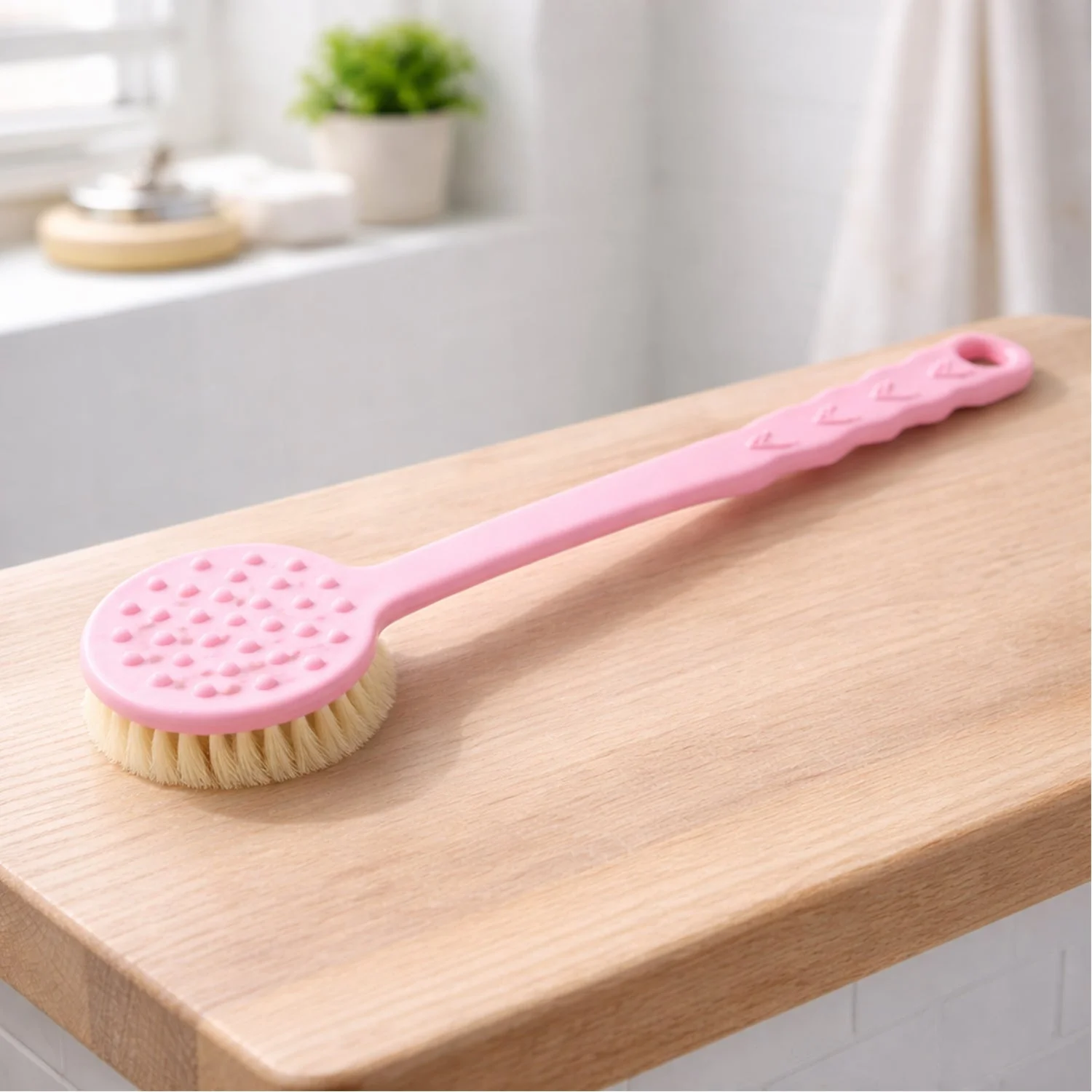 This back scrubber is designed to make your shower experience more refreshing and convenient. Featuring a long handle, it allows you to easily reach your back and clean all areas with ease. The soft bristles are gentle on the skin while effectively exfoliating, promoting healthy skin by removing dead cells. This B-grade version is a great, budget-friendly option for a high-quality, ergonomic back scrubber. Perfect for use in the shower, this scrubber helps you maintain cleanliness and softness, while the handle ensures you can reach even the most difficult spots.