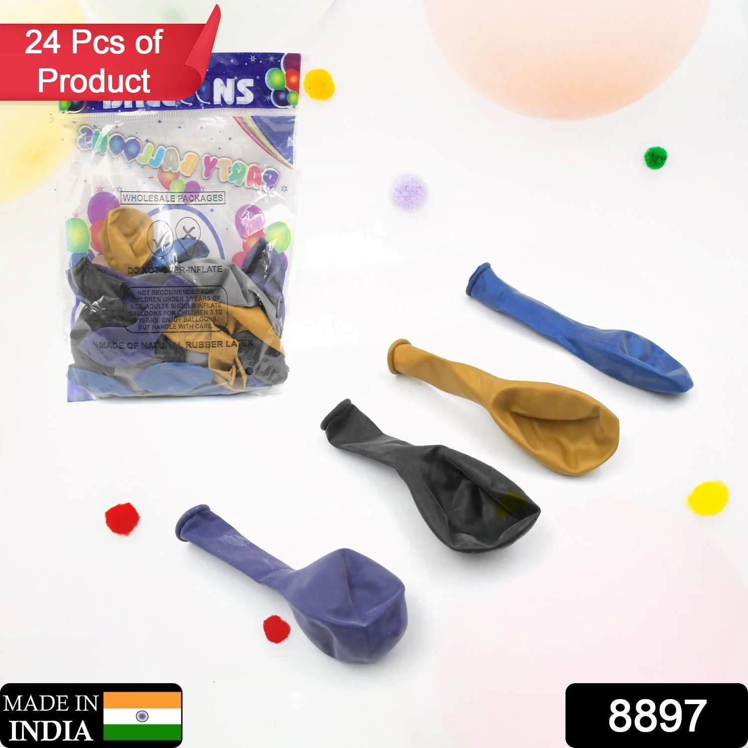 8897 Balloons Kinds of Latex Balloons for Birthday / Anniversary / Valentine's / Wedding / Engagement Party Decoration Birthday Decoration Items for Kids Multicolor (24 Pcs Set)