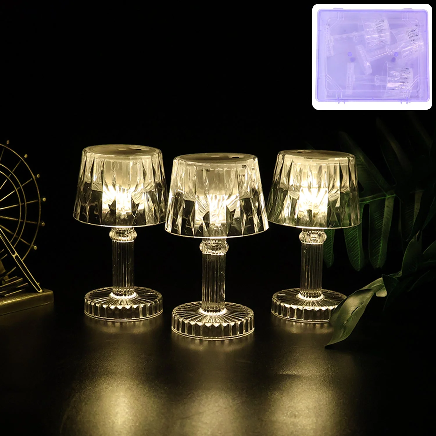 Add elegance and charm to any setting with this 3-piece LED mini table lamp set, designed with a crystal-effect lampshade that beautifully diffuses light. These battery-operated lamps create a warm ambient glow, making them perfect for enhancing table décor during weddings, parties, restaurants, or festive celebrations. Compact yet stylish, they are easy to place and move around without the hassle of wires. Safe, reusable, and eco-friendly, these mini lamps are an excellent alternative to traditional candles and add a luxurious touch to any event.