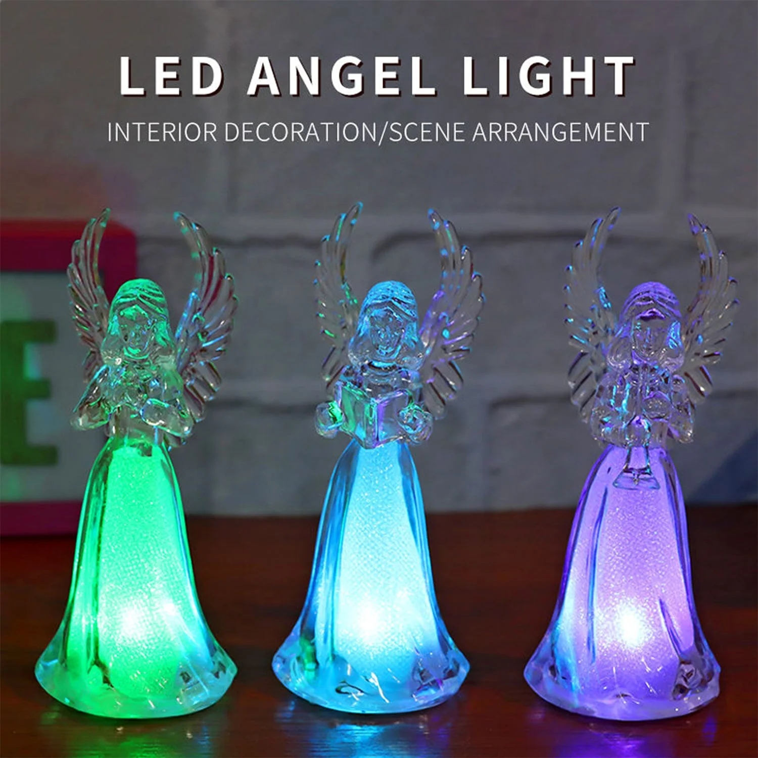 LED angel lights , angel night light , decorative LED figurine , table decoration light, glowing angel lamp , multicolor LED light , festival LED light , battery operated angel light ,christmas decoration , angel figurine light , crystal angel LED , transparent angel decor , angel statue light , glowing angel ornament