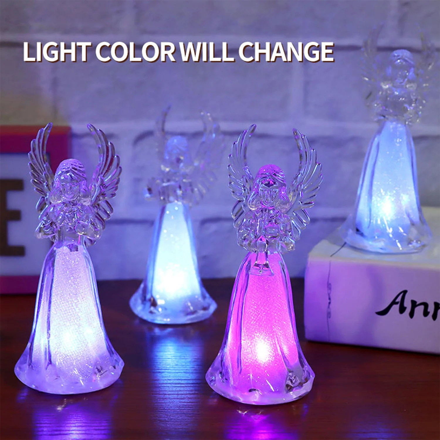 Elegant Angel Design: Transparent angel figurines with radiant LED glow.