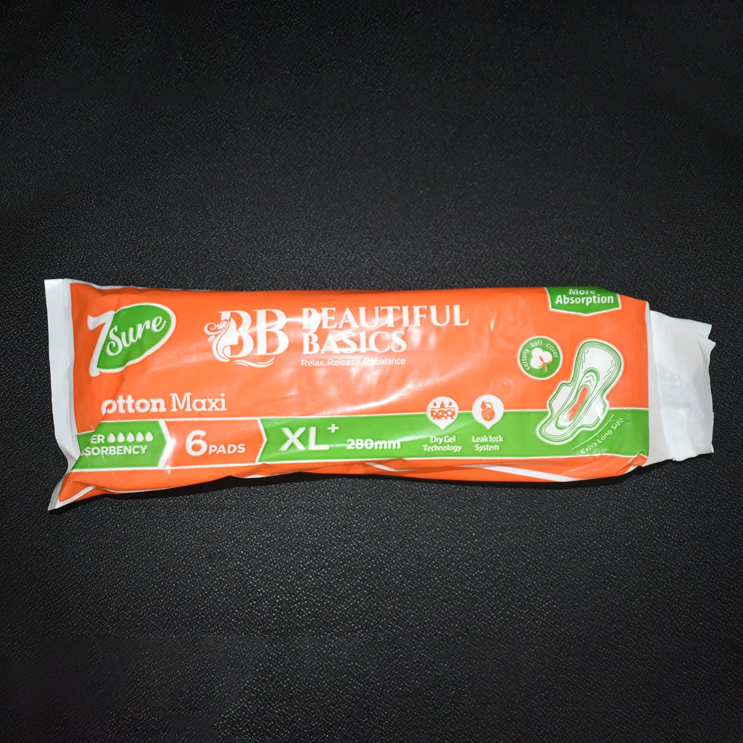 XL+ sanitary pads with 280mm length for extra coverage and protection.