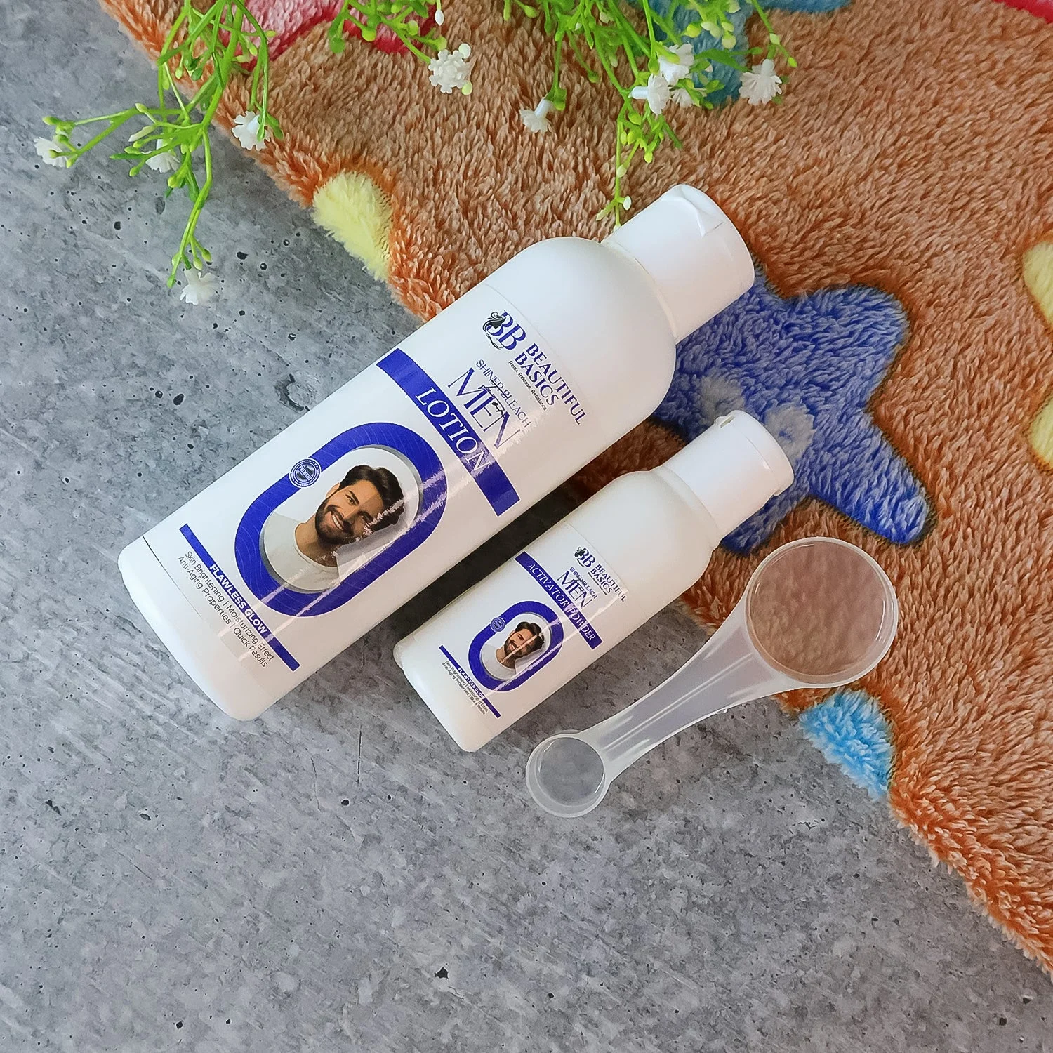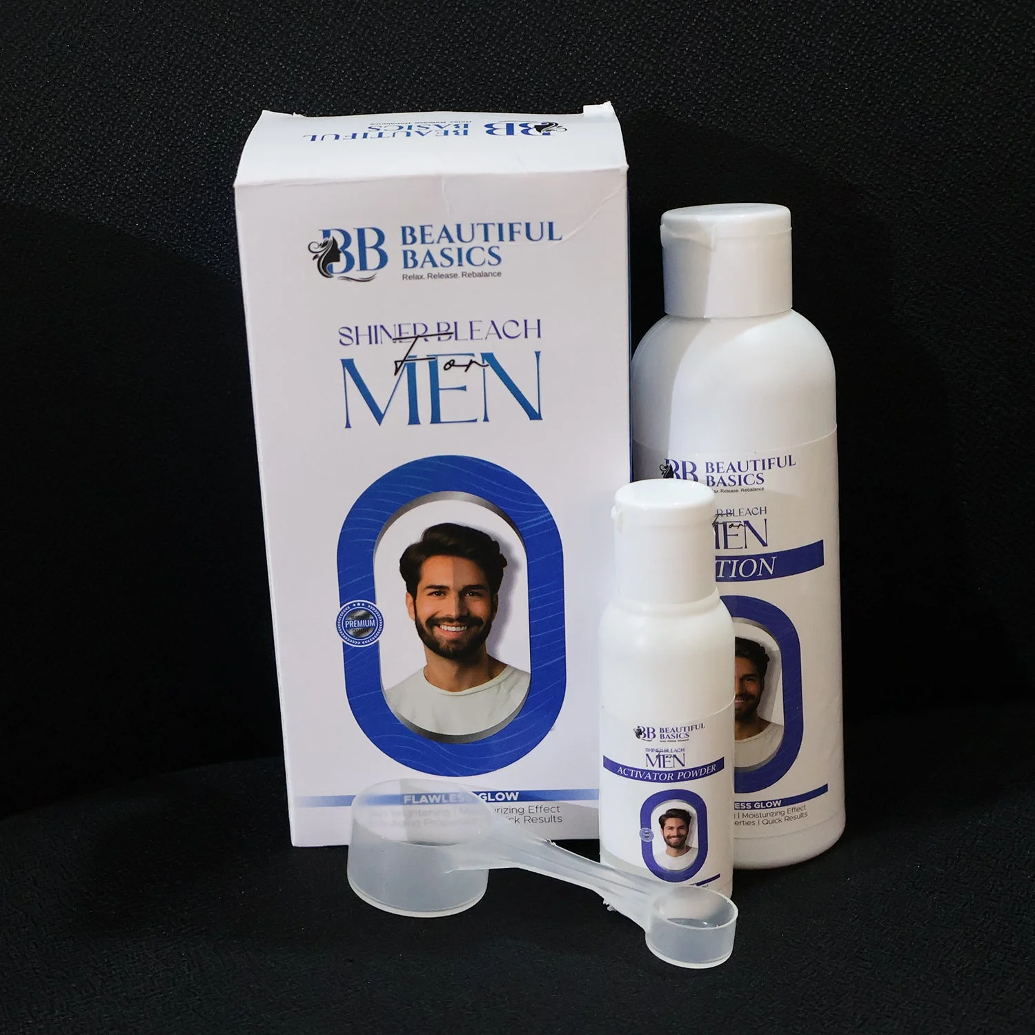 Beautiful Basics Shined Bleach for Men – Skin Brightening Lotion & Activator Powder Set with Measuring Spoon (200 gm)