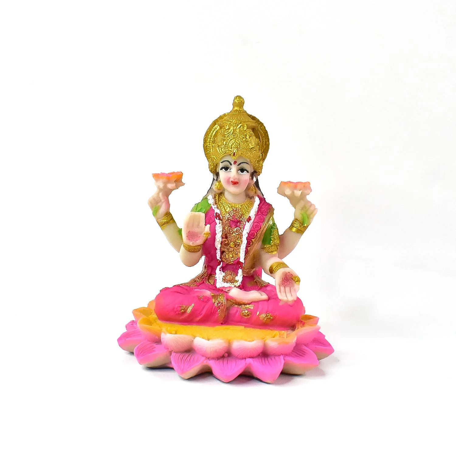 Beautiful Decorative Lakshmi Mata Idol Sitting on Lotus for Home Temple & Festive Decor – Multicolor Polyresin Statue in Brown Box Packaging