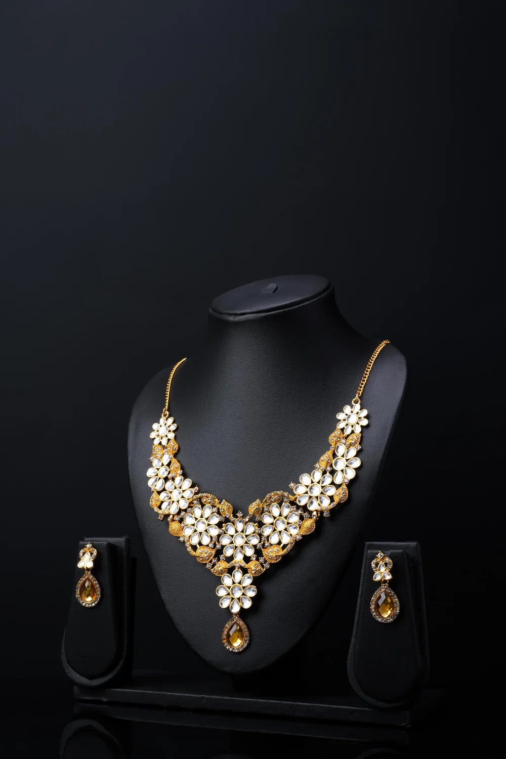 Be the first to review Beautiful Flower Design Necklace Set with Earrings - Elegant Floral Jewelry!