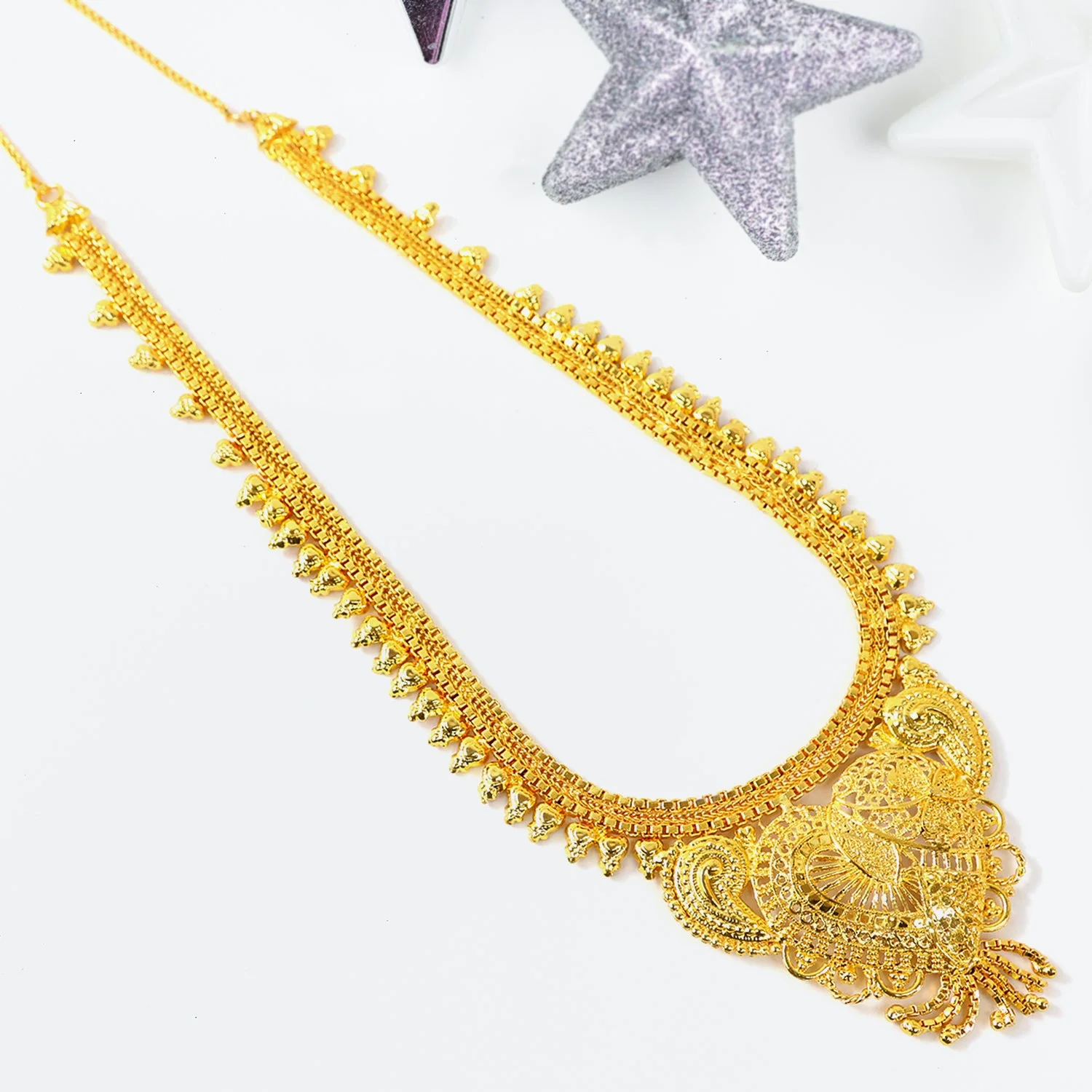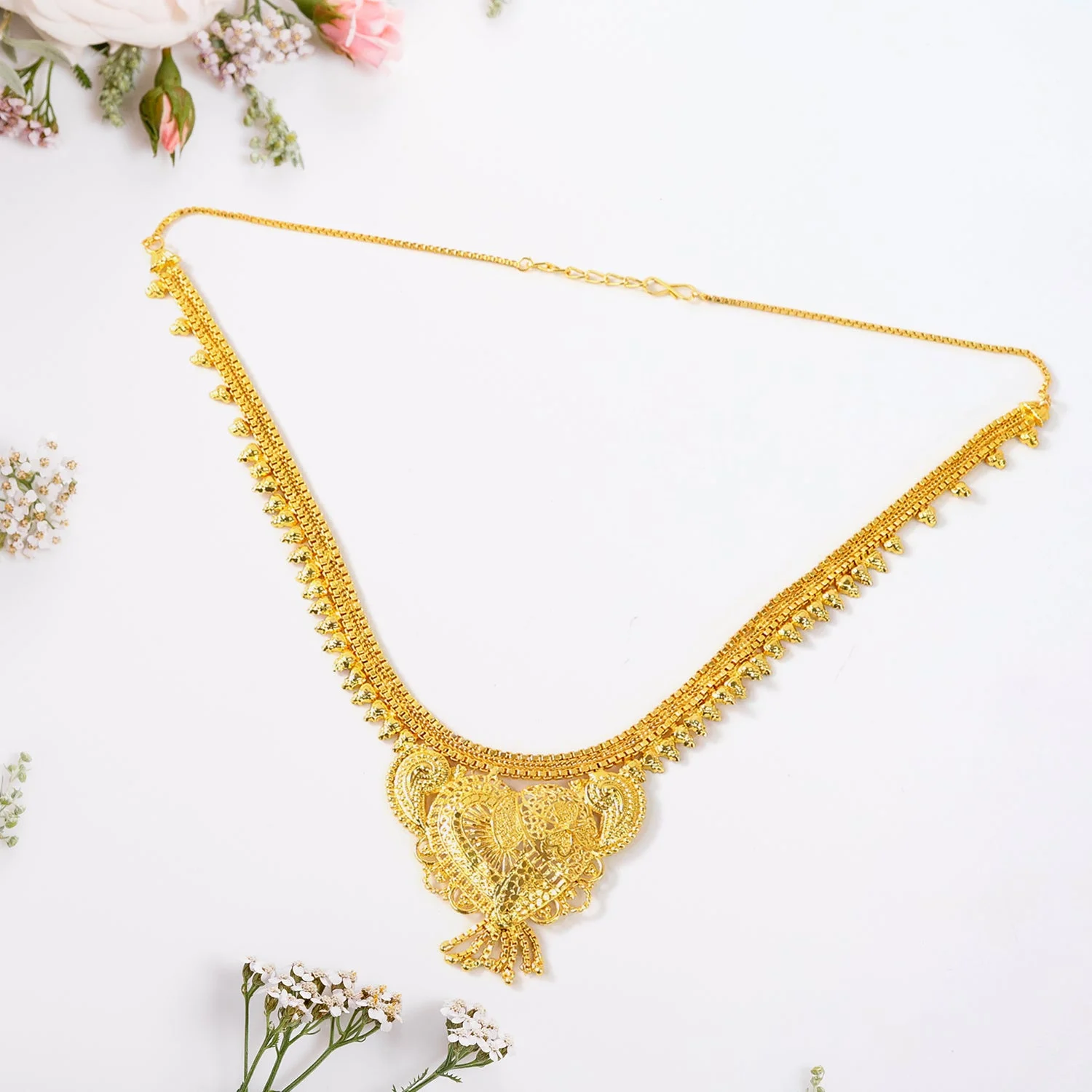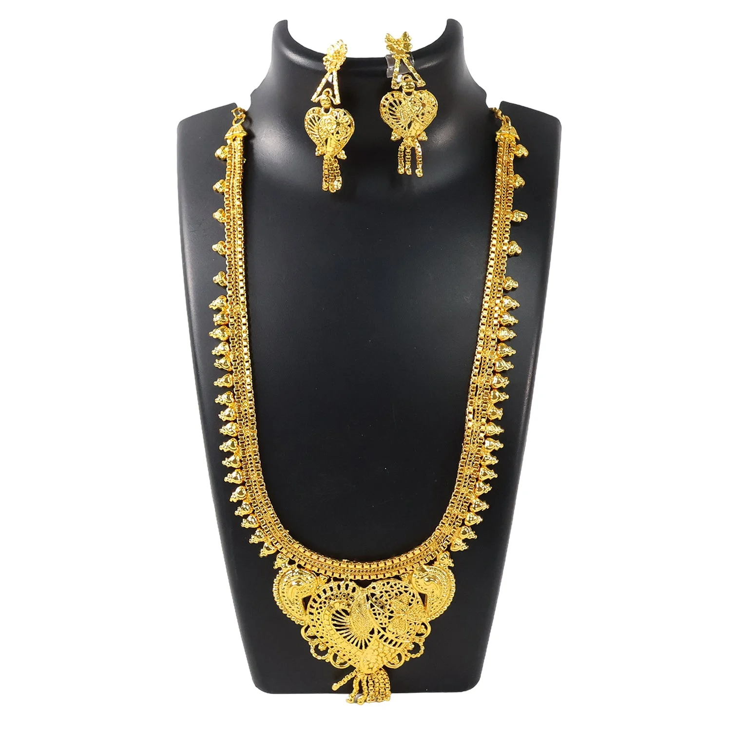 Brass Gold Necklace With Pair of Earrings Set for Women and Girls, Free Size (Pack of 2)