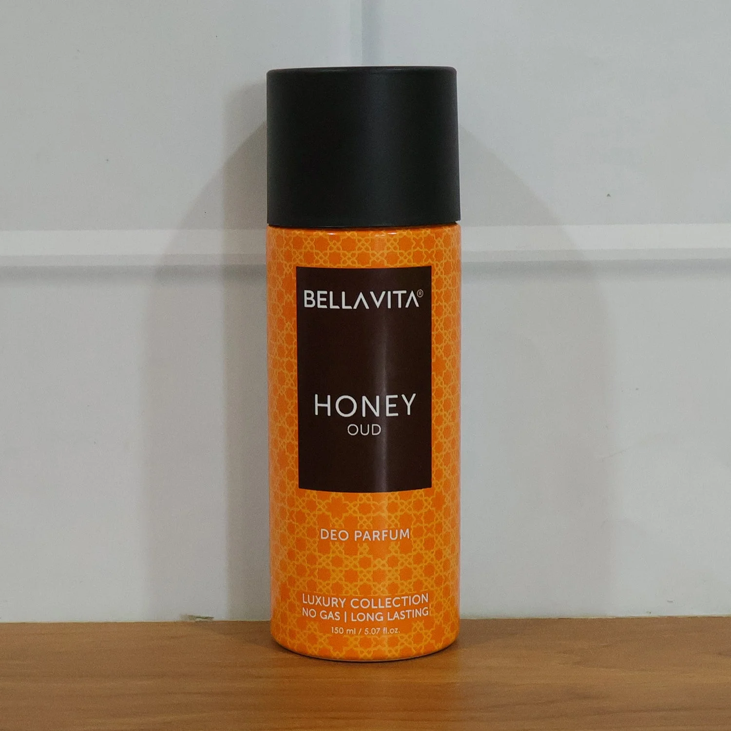 Bellavita Premium Honey Oud Deo Perfume No Gas Long Lasting Luxury Fragrance Body Spray for Men and Women Strong Sweet Warm Oud Scent 150 ML