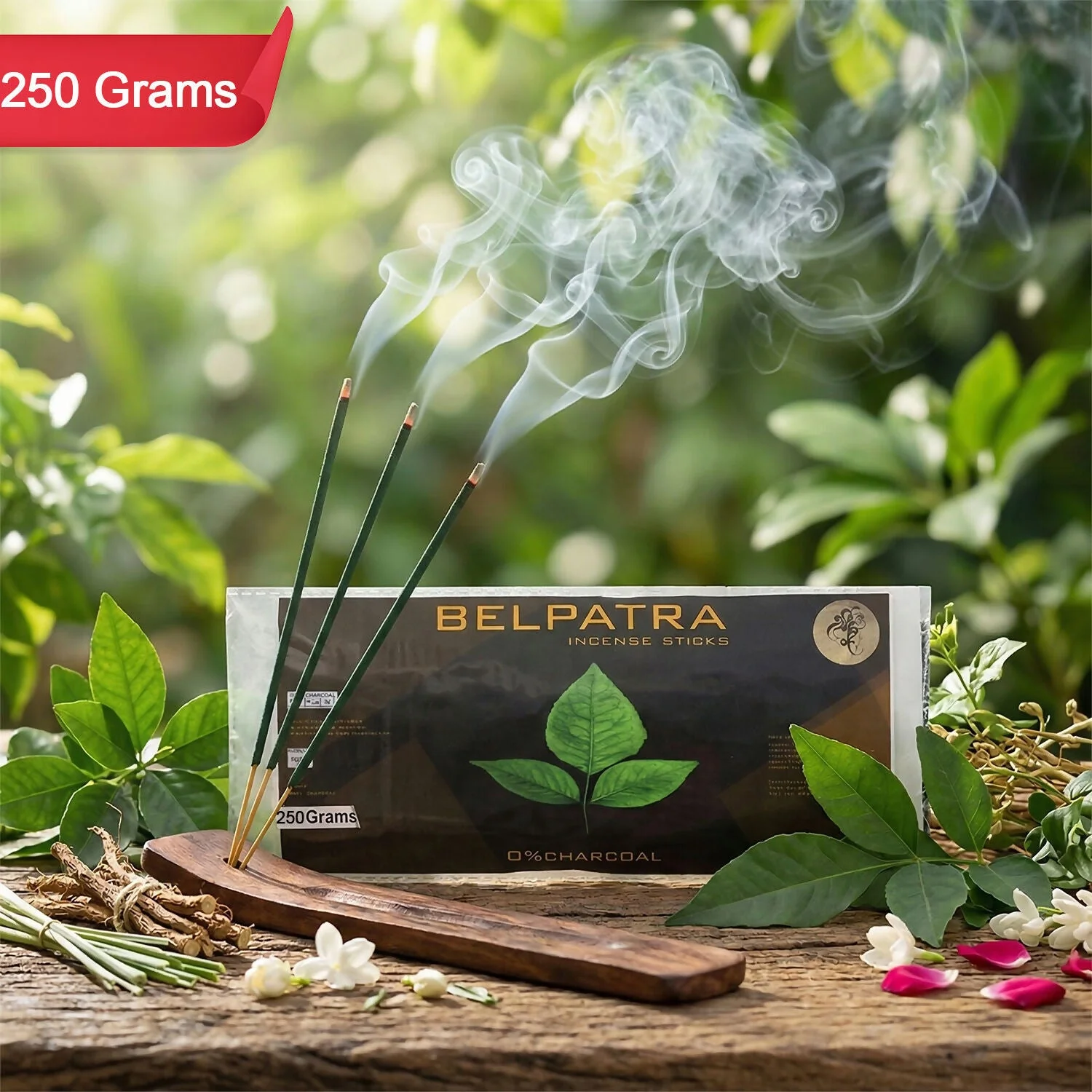 Belpatra Incense Sticks are crafted to create a divine and calming atmosphere during daily prayers, meditation, and spiritual rituals. Infused with a refreshing Belpatra-inspired fragrance, these charcoal-free agarbatti sticks release a smooth and soothing aroma that spreads gently throughout the space. The pleasant fragrance helps purify the surroundings and enhances the spiritual ambiance of homes, temples, and meditation areas. Designed for consistent burning and long-lasting fragrance, these incense sticks are ideal for pooja rituals, yoga sessions, relaxation, and festive occasions. Perfect for creating a peaceful and aromatic environment, Belpatra Incense Sticks bring a traditional touch of purity and positivity to your surroundings.