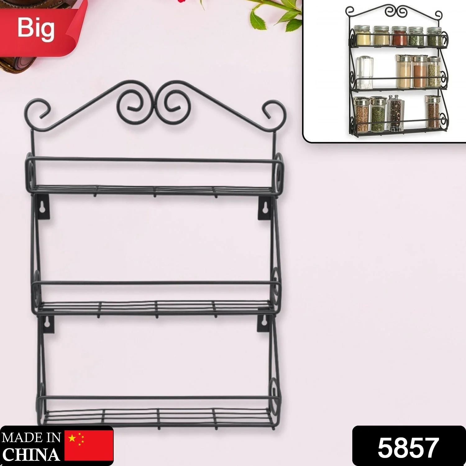 5857 Big Wall Mounted Iron Wall Shelf with 3 Storage Racks for Kitchen, Pantry, Cabinet, Counter top or Free Standing, Rack Holder for Kitchen