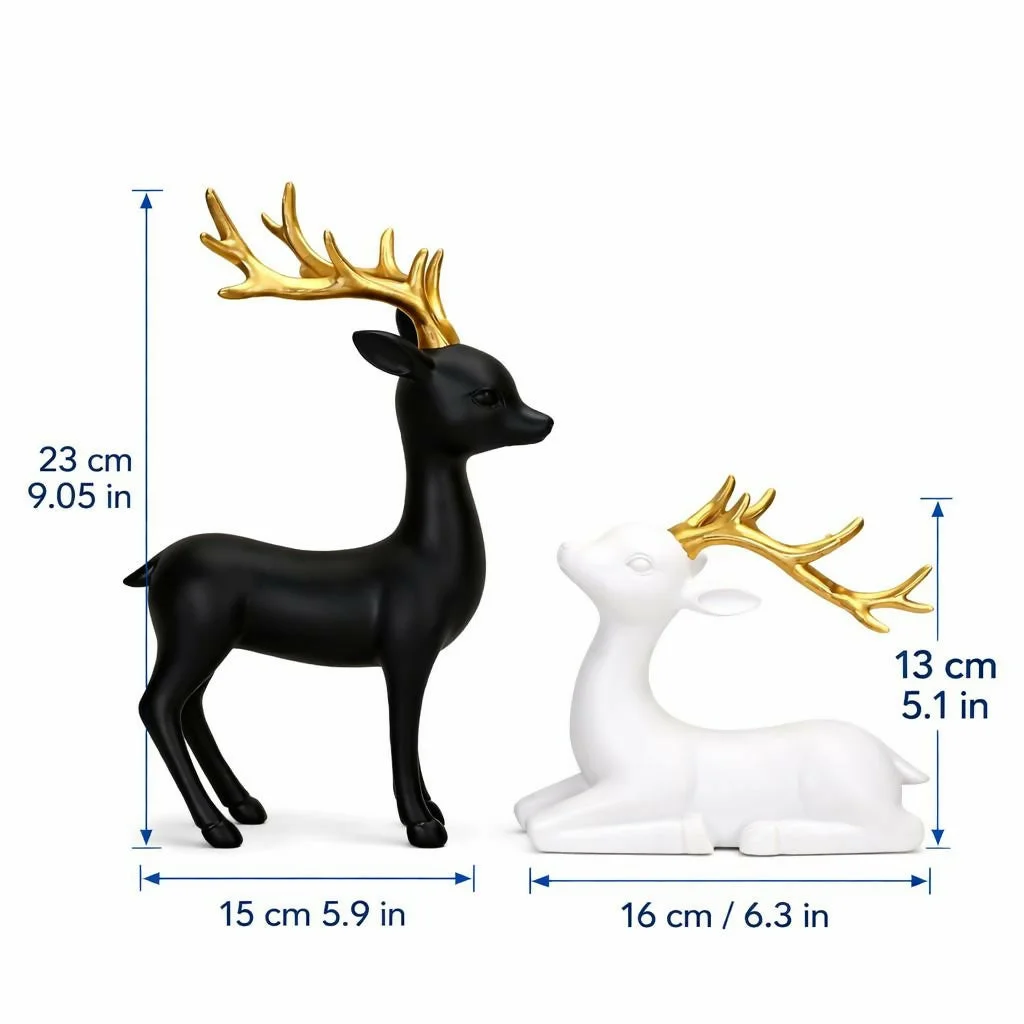Be the first to review Black and White Deer Showpiece Set with Golden Antlers for Home Decor!