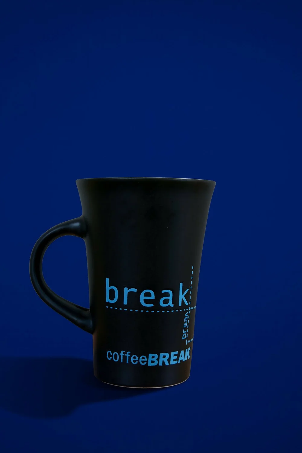 Trendy Coffee Print: Black matte design with stylish “Coffee Break” lettering.