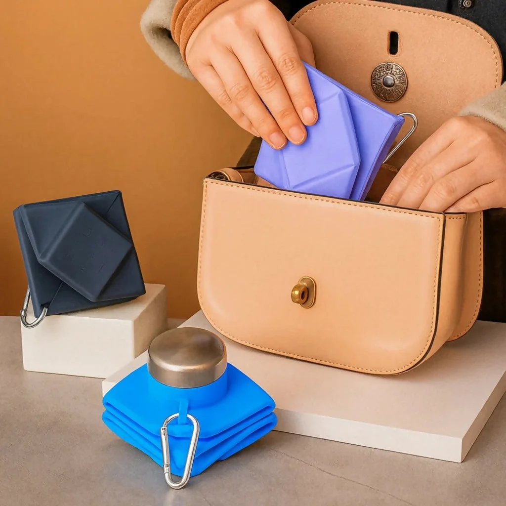 Stay hydrated on the go with this black collapsible silicone water bottle, designed for maximum convenience and portability. With a 600ml capacity, it expands for use and folds down compactly when empty, saving space in your bag. Crafted from flexible and durable silicone, it is perfect for travel, gym, office, and outdoor activities. The secure leakproof cap and attached hook make it easy to carry anywhere, making it a reliable everyday hydration solution.