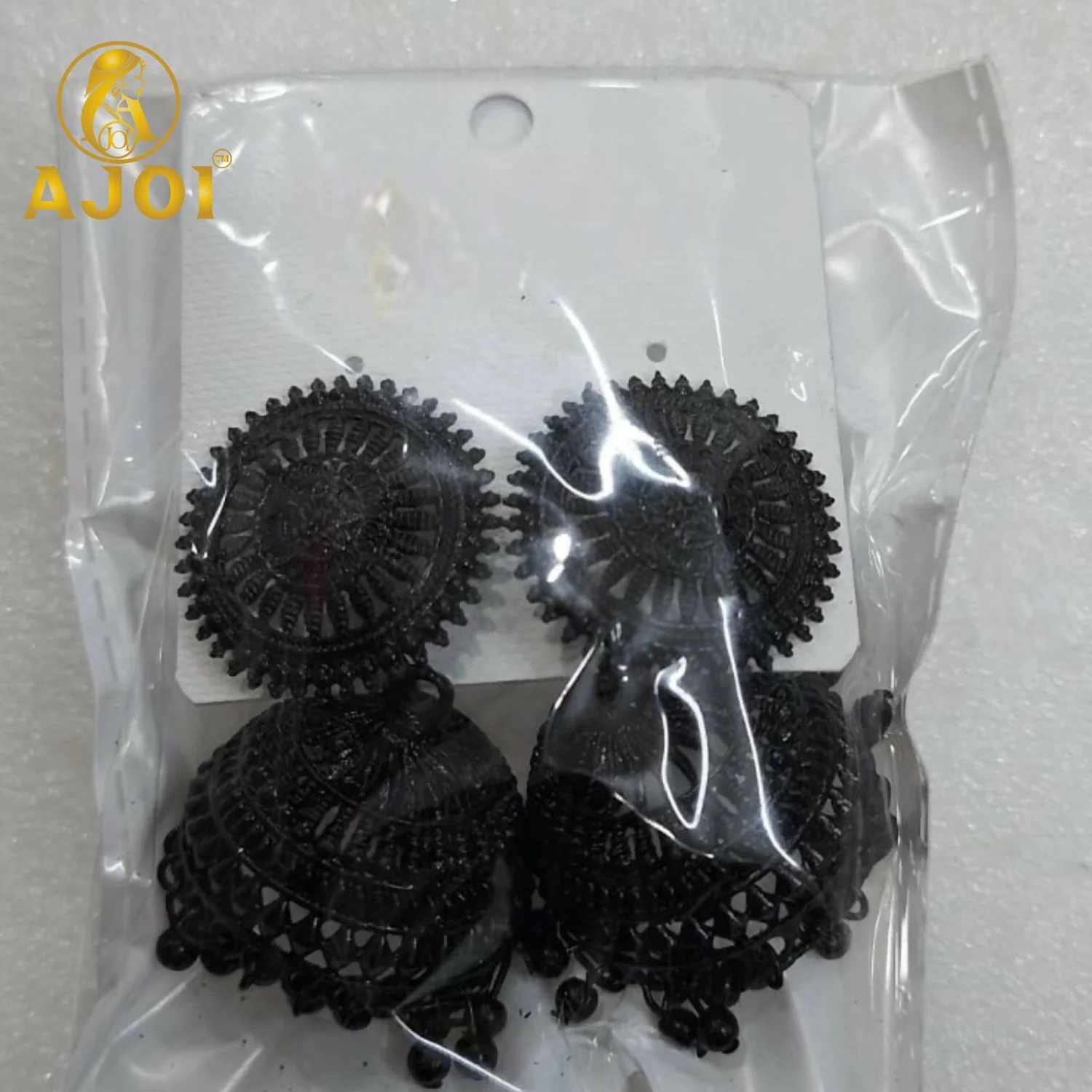 The rich black oxidized finish adds a vintage charm, making these earrings perfect for festive occasions, cultural events, office ethnic days, and casual traditional styling. The intricate carvings reflect fine artistry, while the lightweight construction ensures comfortable wear throughout the day.Pair these versatile jhumkas with sarees, kurtis, lehengas, or Indo-western outfits to create a powerful and graceful look. A must-have addition to every jewelry collection.