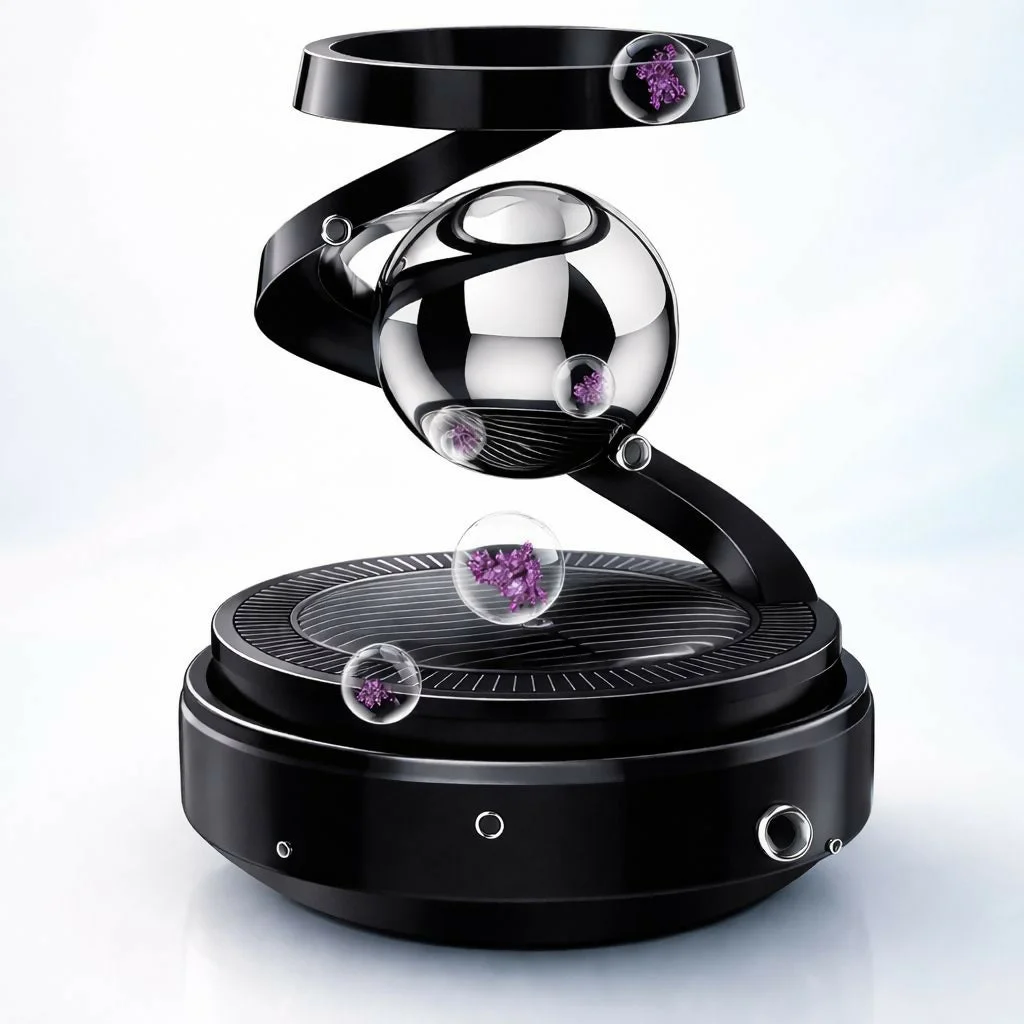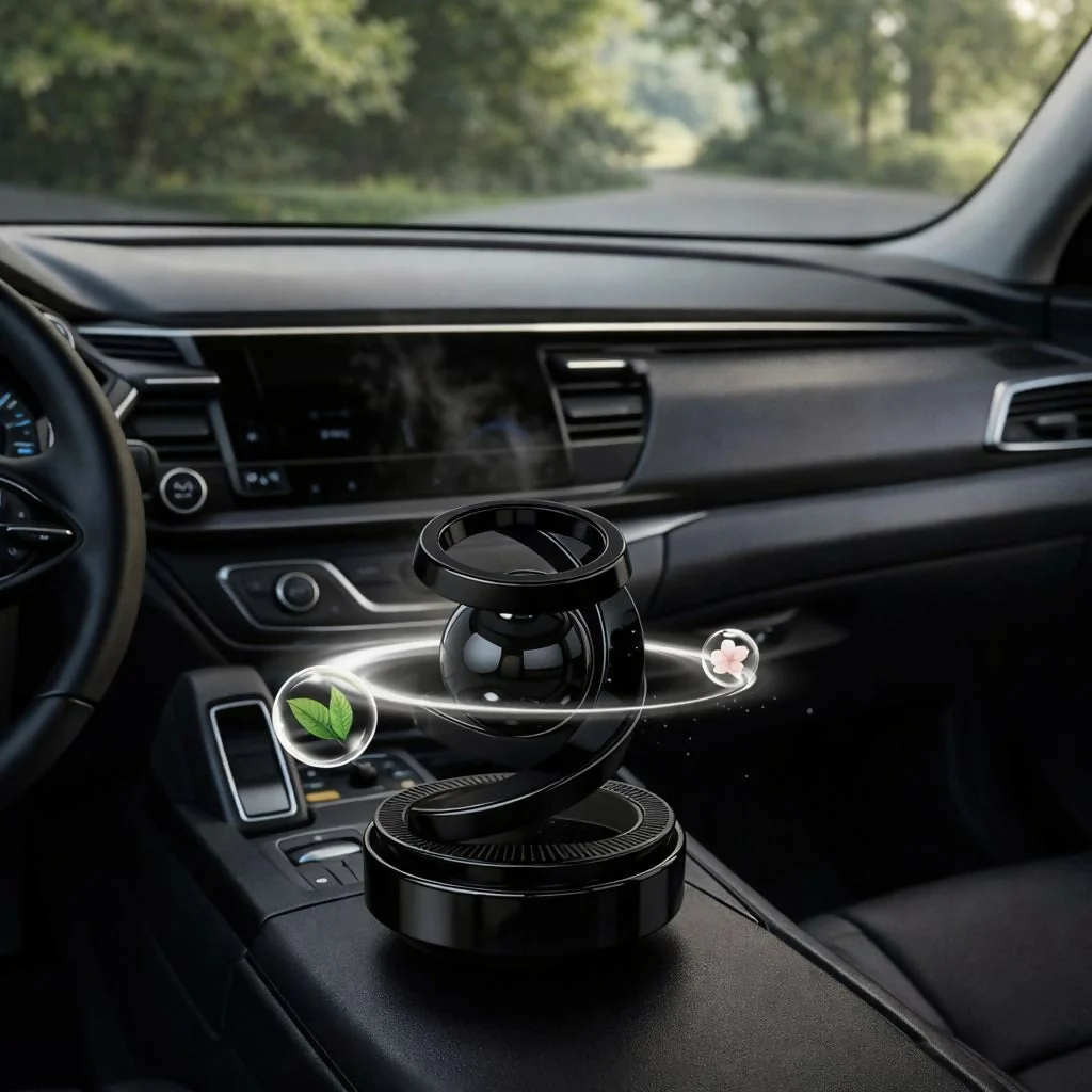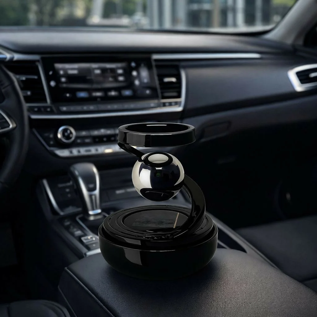 Add a premium touch to your car interior with this magnetic levitation rotating car air freshener. Designed with a sleek modern structure and smooth spinning motion, it releases pleasant fragrance while enhancing the aesthetics of your dashboard or center console. The elegant rotating design creates a mesmerizing visual effect while dispersing refreshing aroma throughout your vehicle. Compact and stylish, this aromatherapy diffuser is perfect for keeping your car environment fresh, relaxing, and visually appealing during every drive.