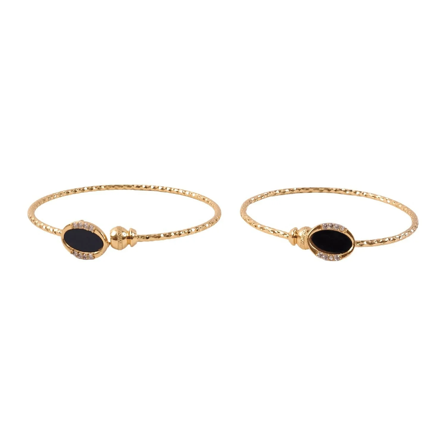 Add a touch of sophistication to your jewelry collection with this Elegant Black Stone Gold Plated Open Bangle Bracelet. Designed with a modern open-ended style, this bracelet features two polished black stone accents surrounded by sparkling crystal detailing for a refined and luxurious look.