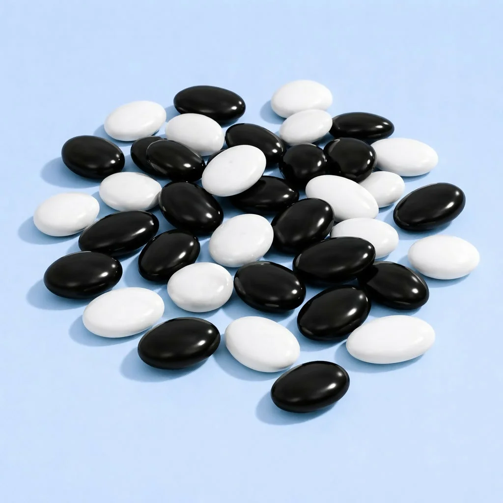 • Smooth polished black and white pebbles