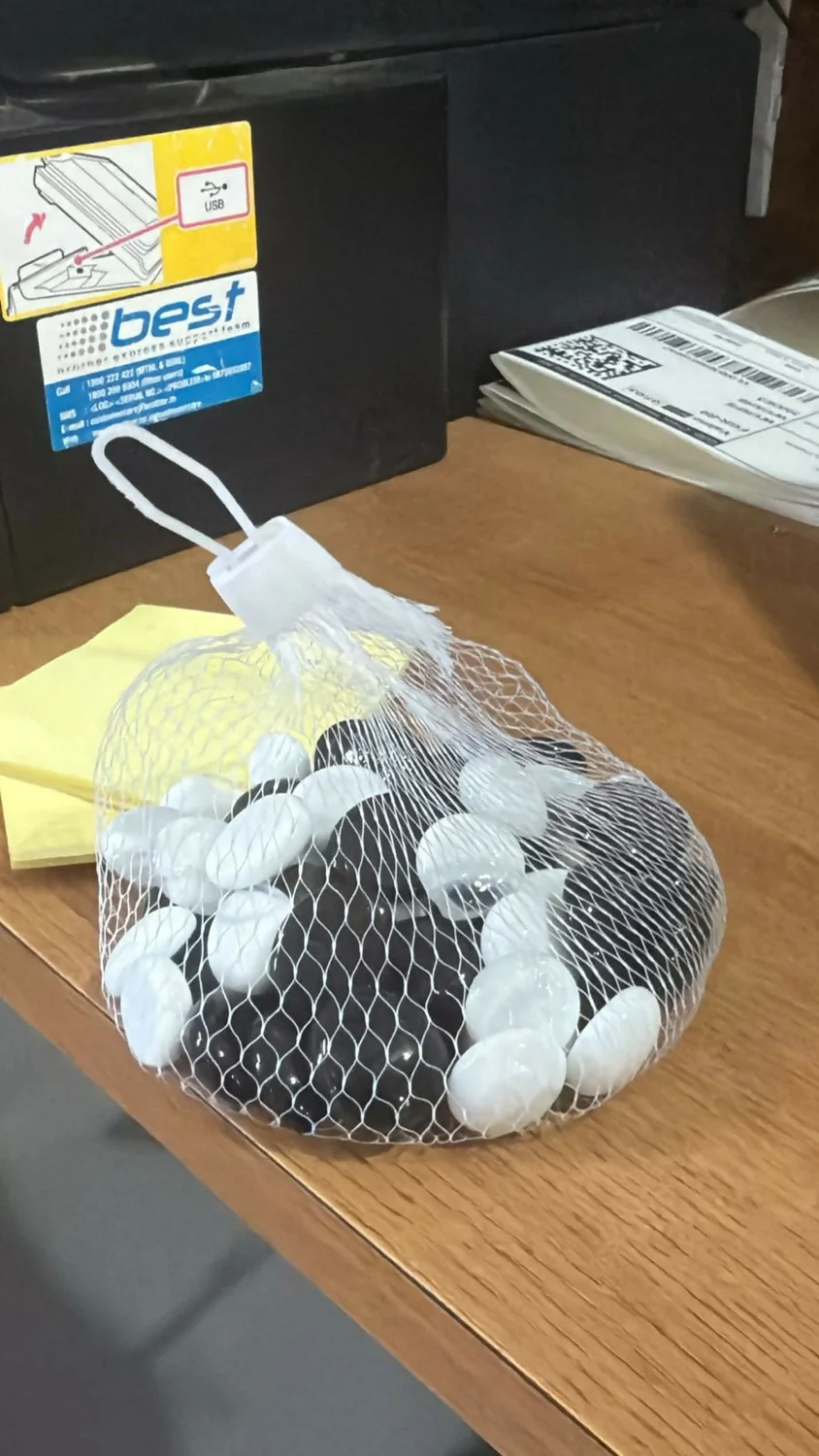 Enhance your indoor and outdoor décor with these smooth black and white decorative pebbles. Perfect for plant pots, water fountains, aquariums, vases, and garden landscaping, these polished stones add a modern and elegant touch to any space. Their smooth finish and natural look make them ideal for home décor projects, DIY crafts, and terrarium decoration. Packed in a convenient mesh bag for easy storage and use.