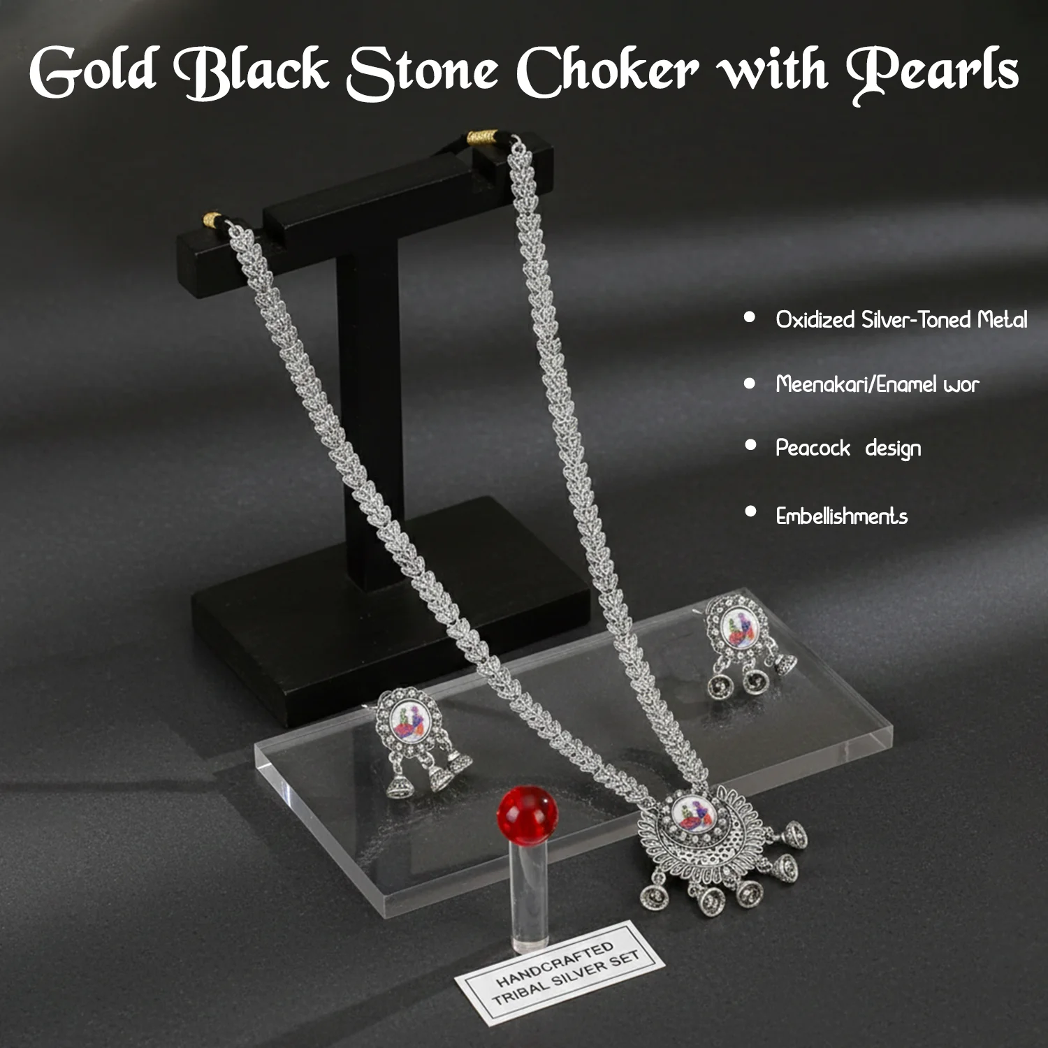 Be the first to review Bold Gold-Tone Black Stone Choker with Pearl Drops!
