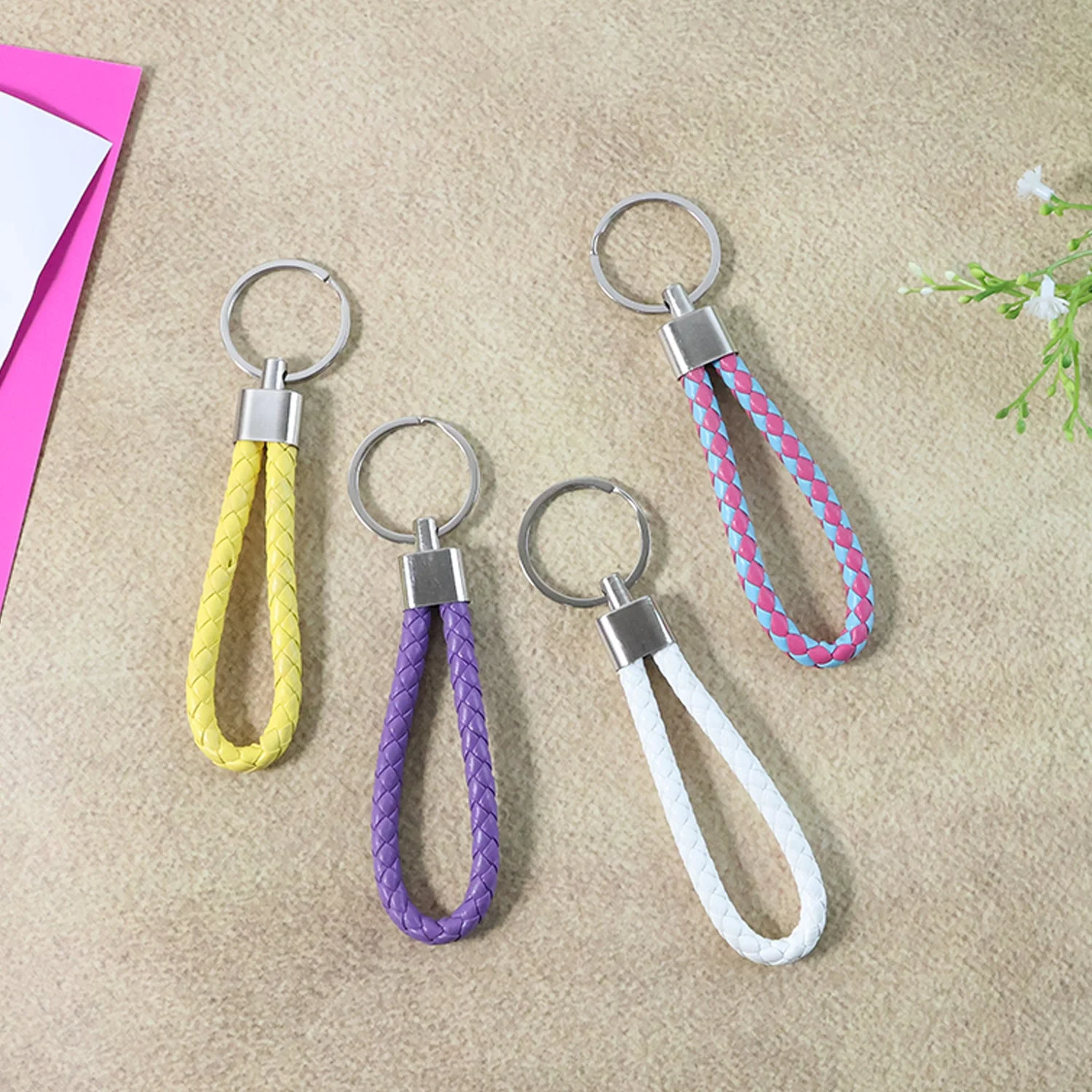 This braided loop keychain set is designed to keep keys organized while adding a stylish and modern touch to everyday carry essentials. Each keychain features a strong loop design that makes handling, carrying, and locating keys easy in bags, pockets, or on desks. The smooth braided finish offers a comfortable grip, while the sturdy key ring securely holds multiple keys together. Ideal for daily personal use or sharing among family members, this multipurpose key holder set combines practicality with visual appeal. Suitable for regular use across home, office, and travel environments.