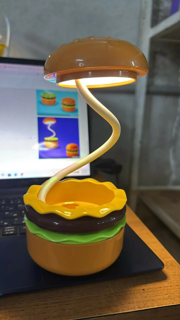 burger desk lamp, hamburger LED lamp, kids desk lamp, novelty desk lamp, LED study lamp for kids, kids table lamp, lamp with sharpener, cartoon desk lamp, kids study table lamp, bedside lamp for kids, decorative kids lamp, children reading lamp, unique desk lamp for kids, LED night lamp for kids, kids room lamp