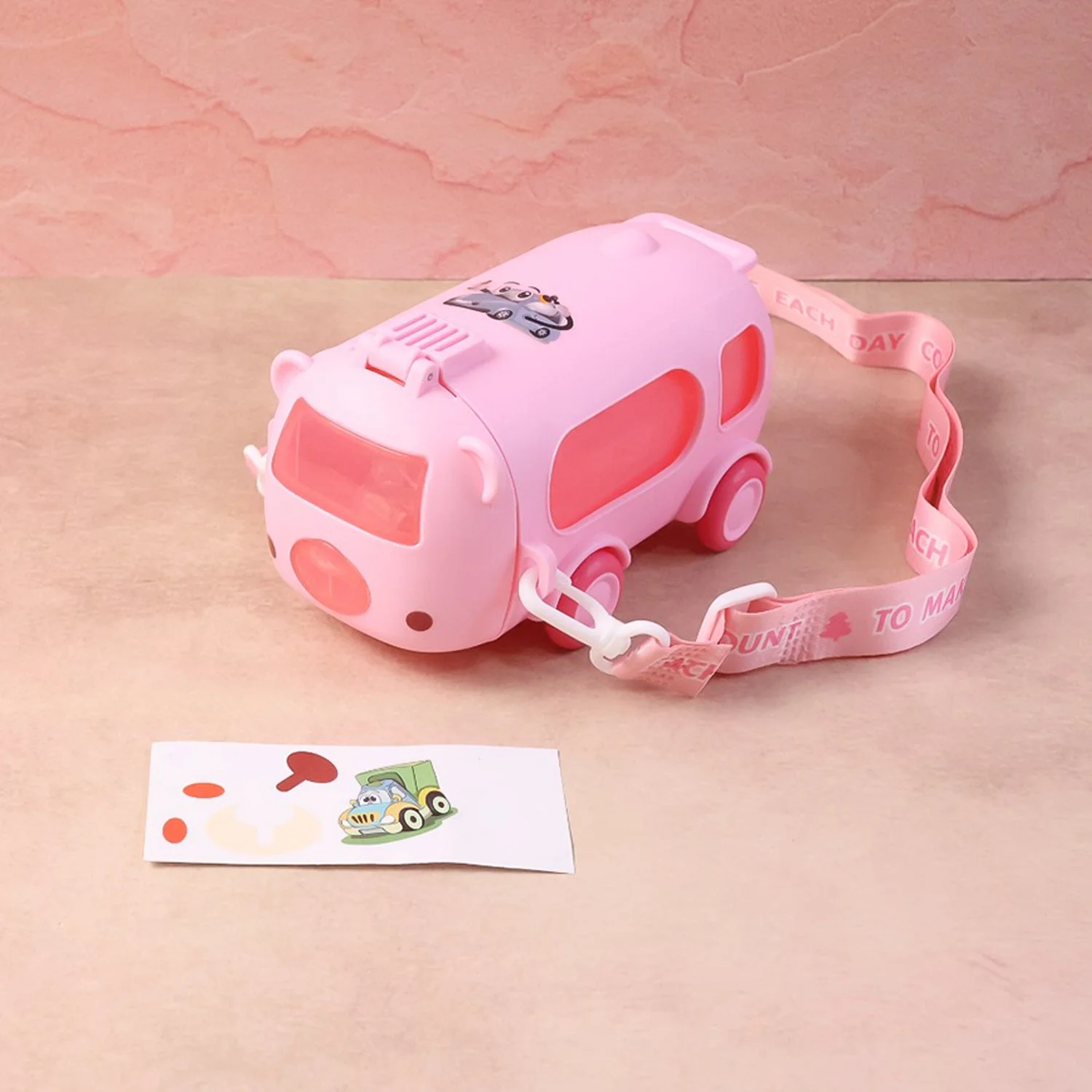 Bus Shaped Kids Water Bottle with Strap – 500ml Cute Cartoon Design With Sticker