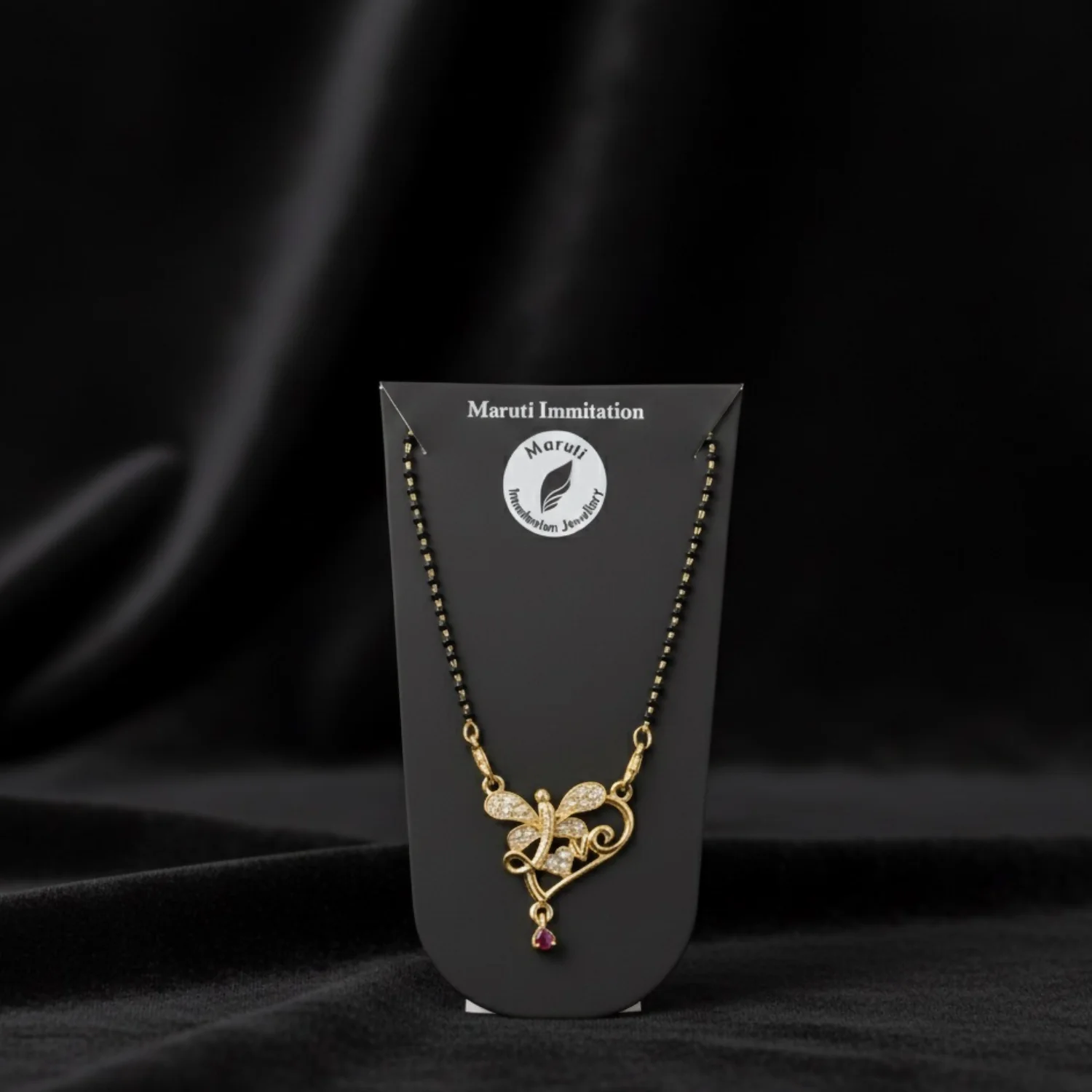 Be the first to review Butterfly Design Gold-Tone Mangalsutra with Sparkling Stones & Pink Dangler!