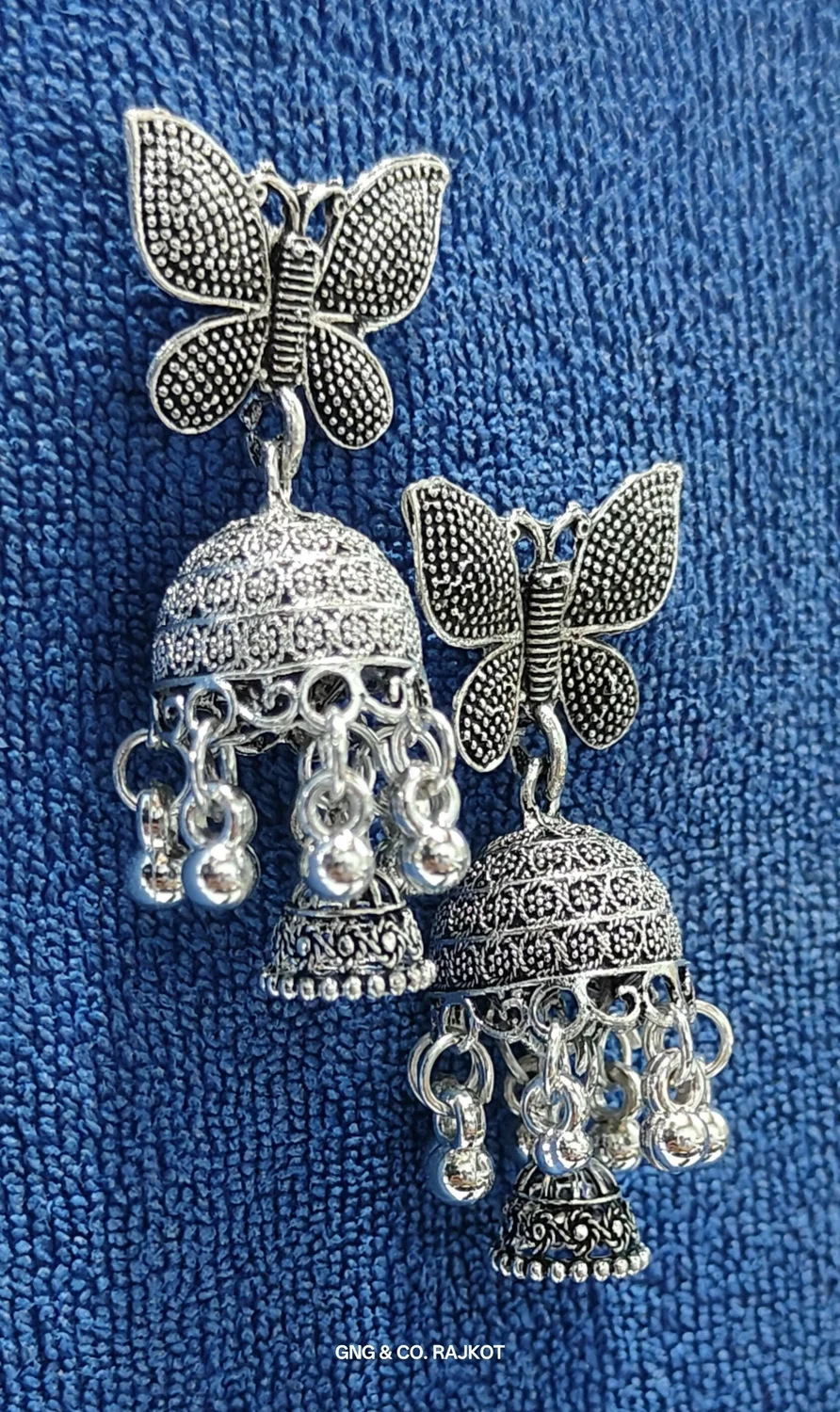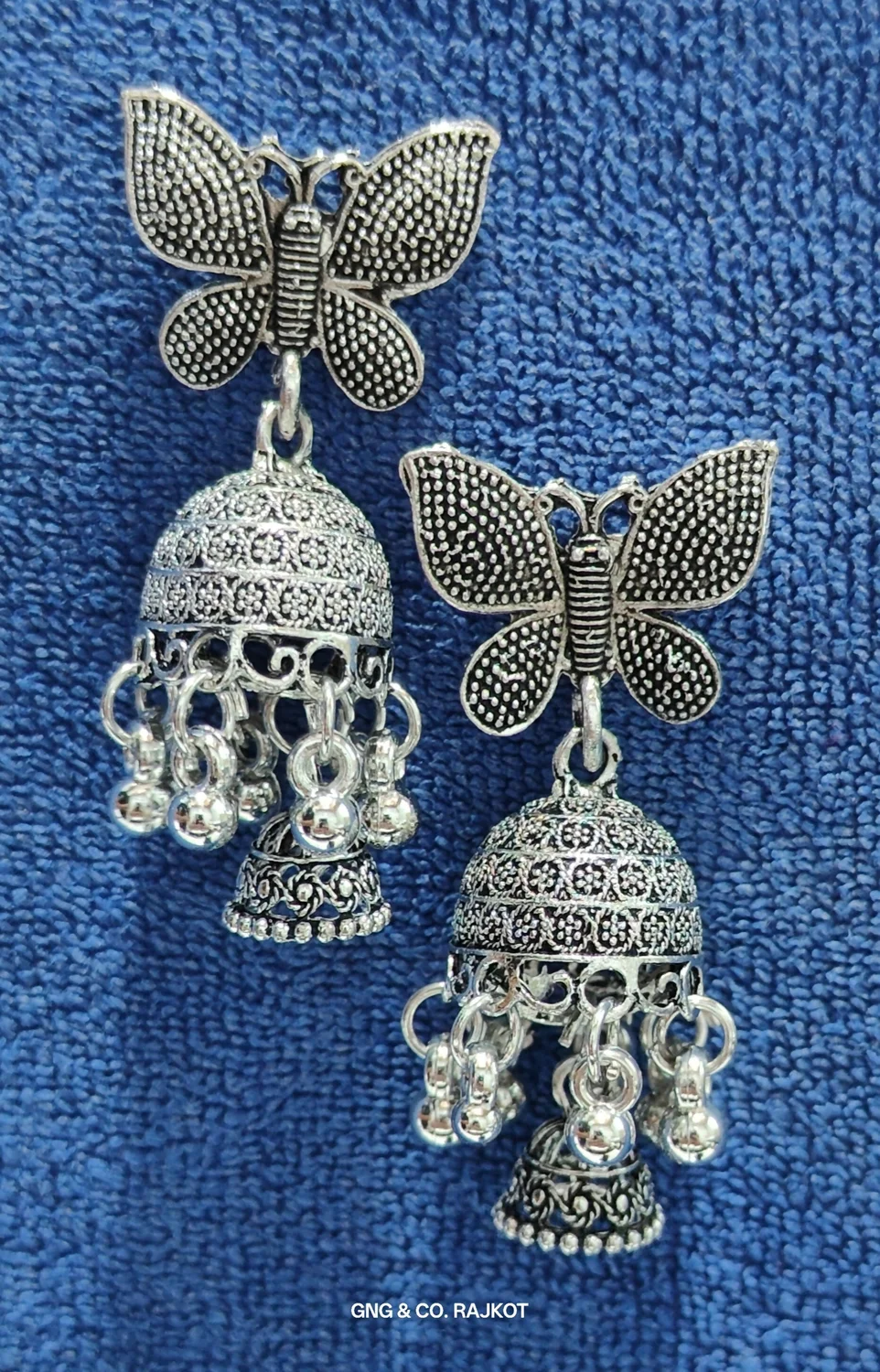 Let your style take flight with these charming Butterfly Tops Jhumka Earrings. Featuring delicate butterfly-shaped tops, these earrings combine the grace of nature with traditional elegance. The jhumka drop adds a classic ethnic touch, making them perfect for both festive occasions and casual outings. Lightweight, trendy, and eye-catching—these earrings are a must-have for jewelry lovers who love to stand out.