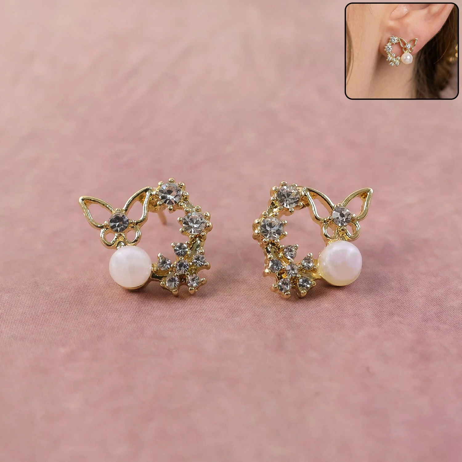 Be the first to review Butterfly Pearl Crystal Stud Earrings for Women And Girls!