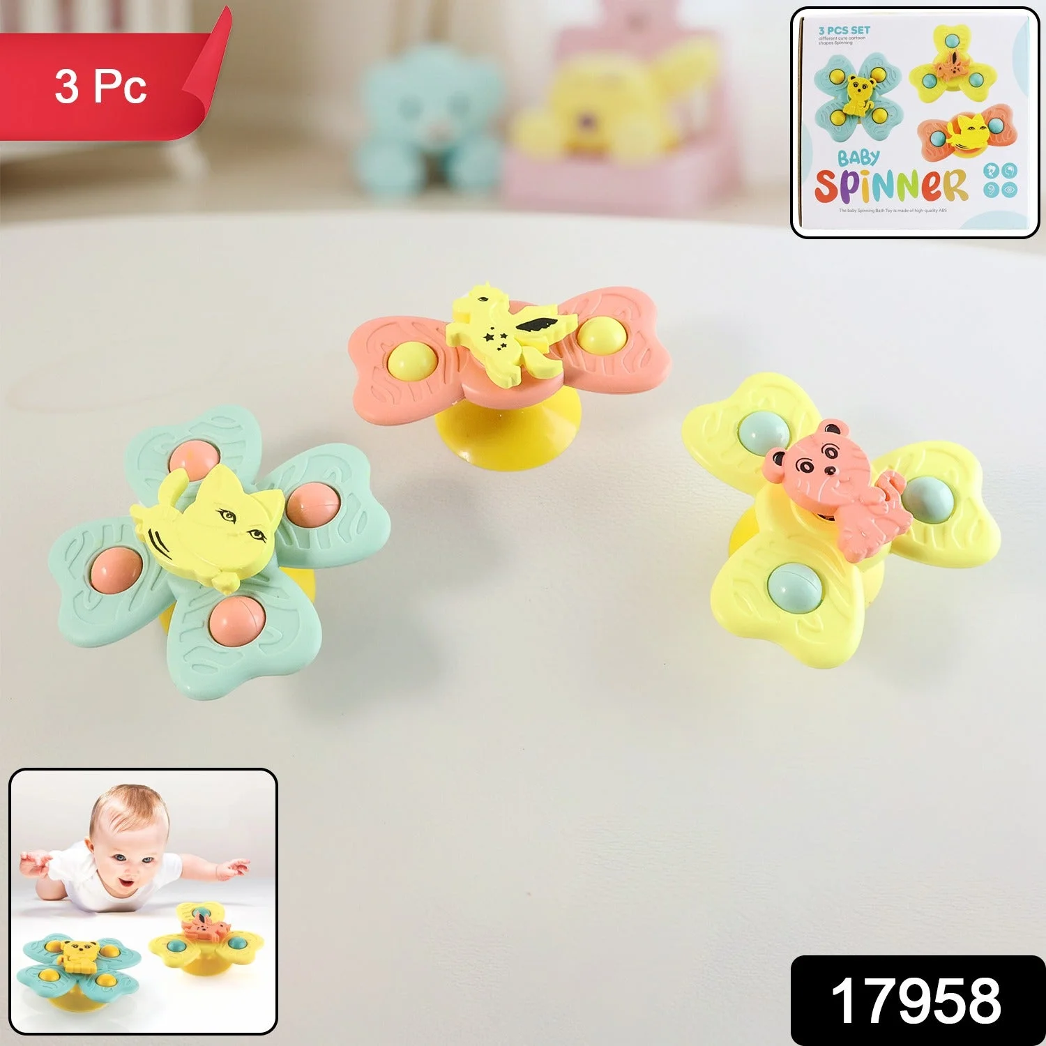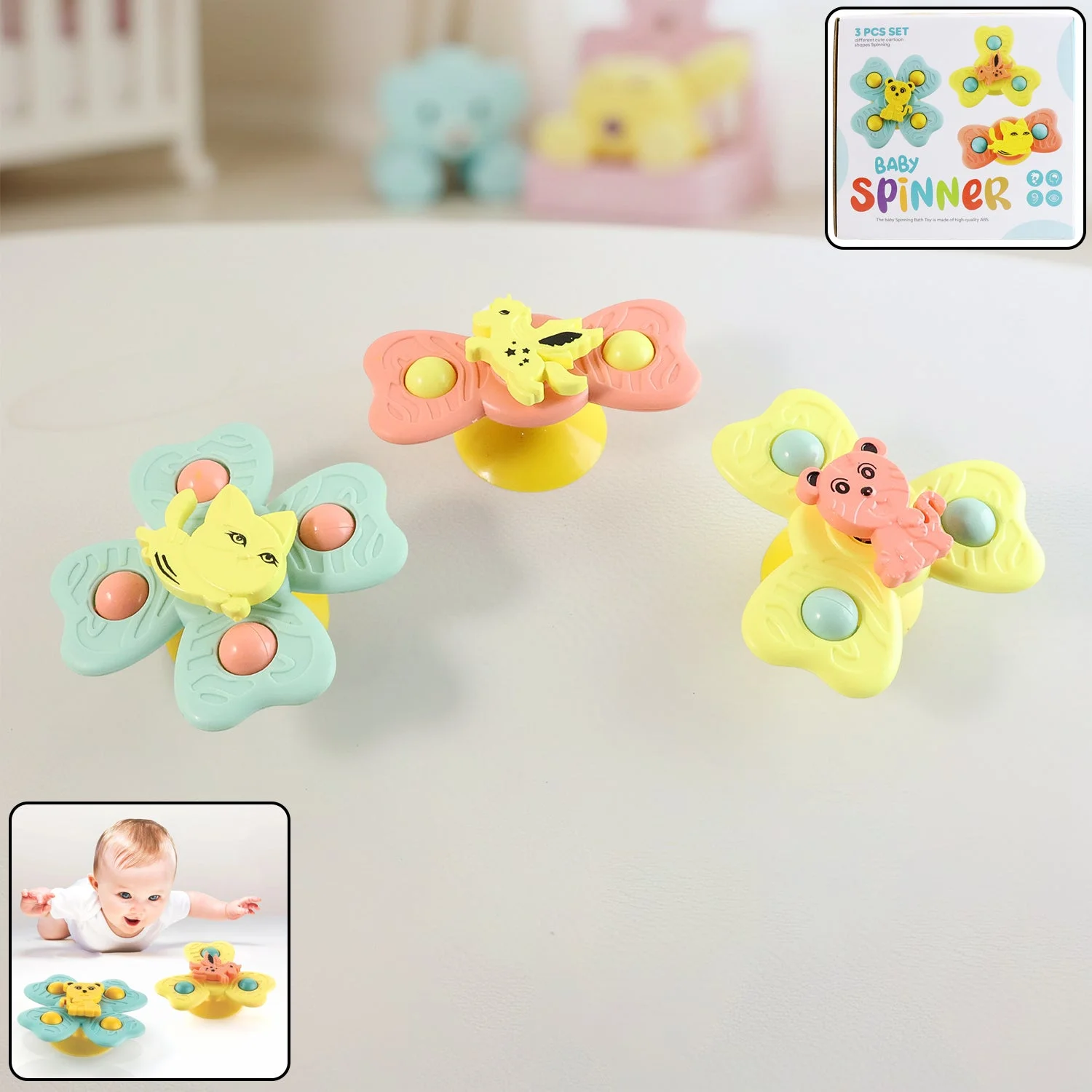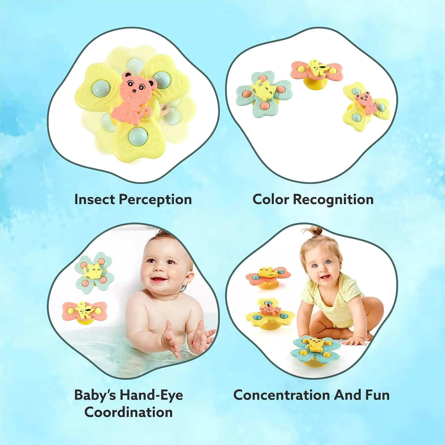 Buzzy Baby Spinner Toy Set – Suction Cup Spinning Toys for Sensory Development, Tummy Time Play & Early Learning Stimulation (3 Pc Set)
