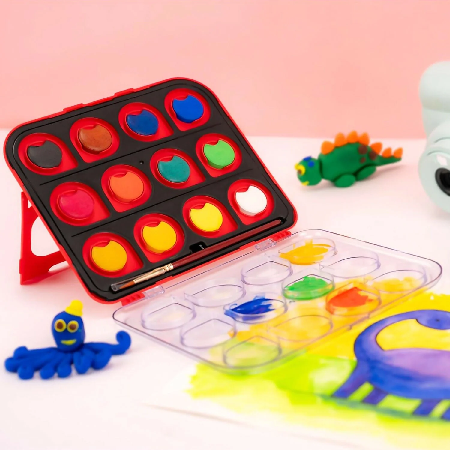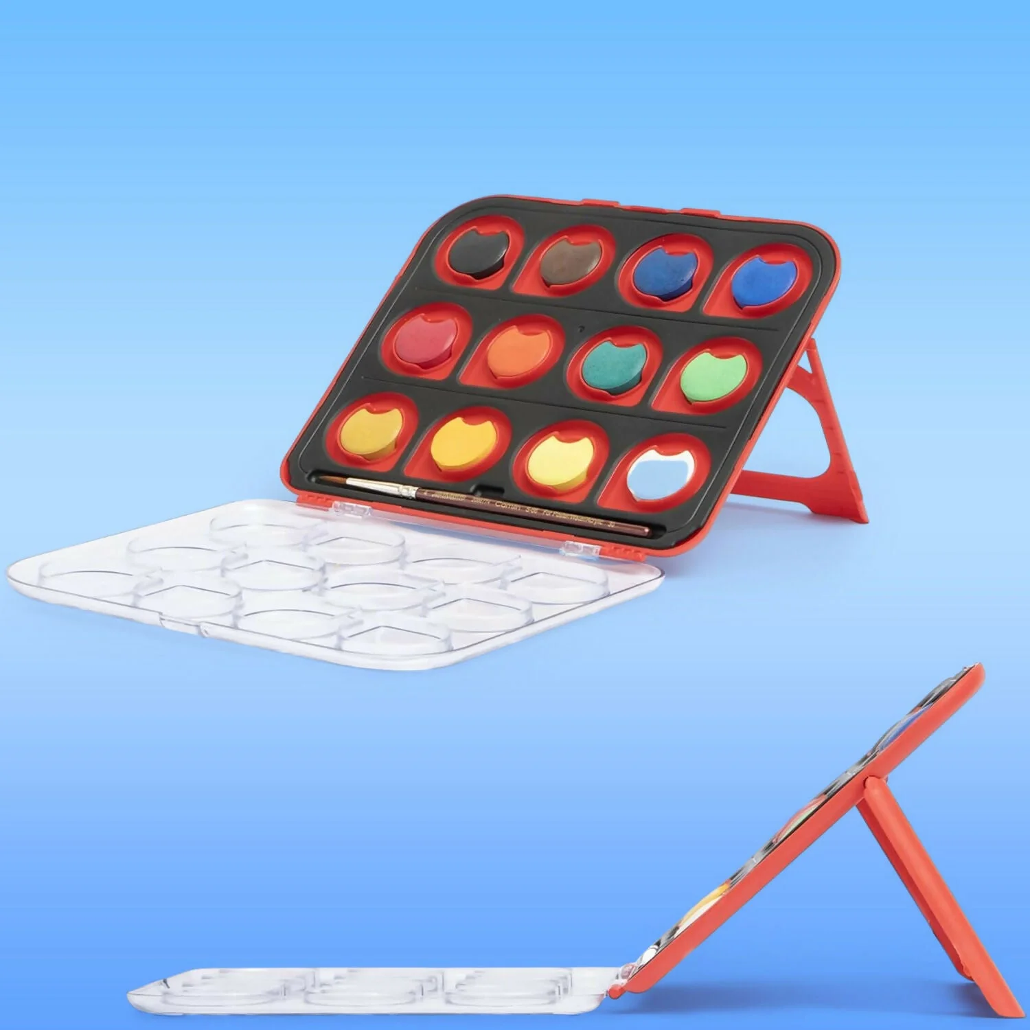 The Camel ColorPad is a vibrant watercolor paint set designed for young artists. It features 12 different shades, perfect for unleashing creativity and making art fun. Ideal for children, it encourages imaginative play while improving fine motor skills and color recognition. The paints are easy to use, making it a great addition to any child's art supplies. The included stand allows for a stable painting surface, and the compact design makes it travel-friendly.
