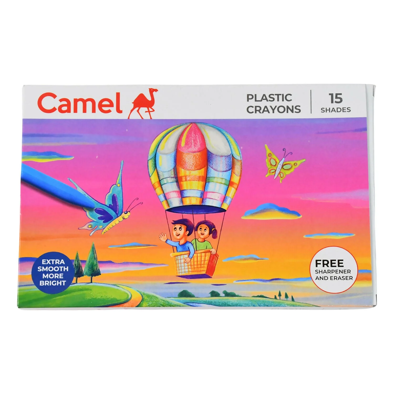 Camel Plastic Crayons by Kokuyo Camlin are designed to offer smooth colouring, bright shades, and long-lasting performance. This 15-shade pack comes with a free sharpener and eraser, making it a complete colouring set for kids and beginners. The crayons are made from high-quality plastic, ensuring they are sharpenable, erasable, and smudge-free, which makes colouring neat and enjoyable. Compact and easy to carry, this set is perfect for school use, art projects, and creative fun at home.