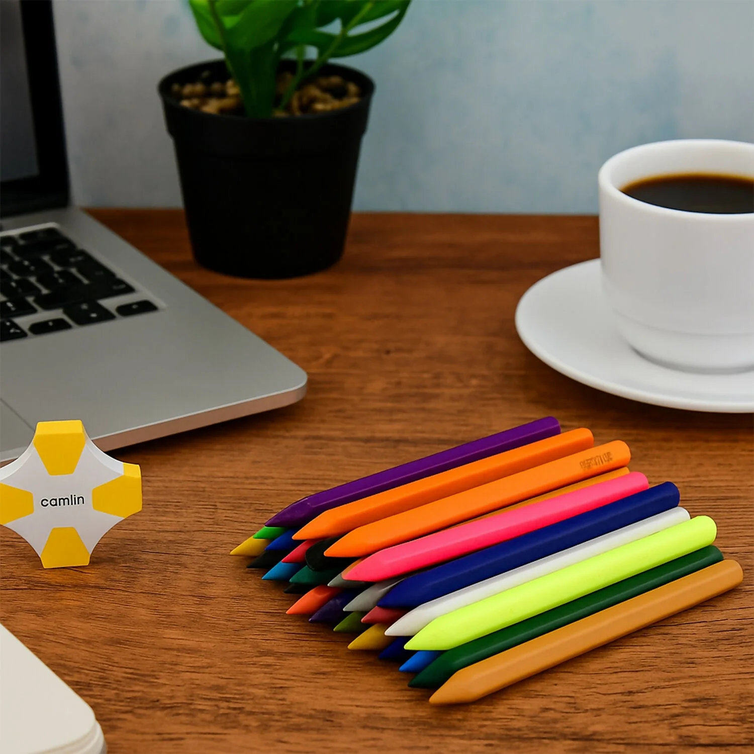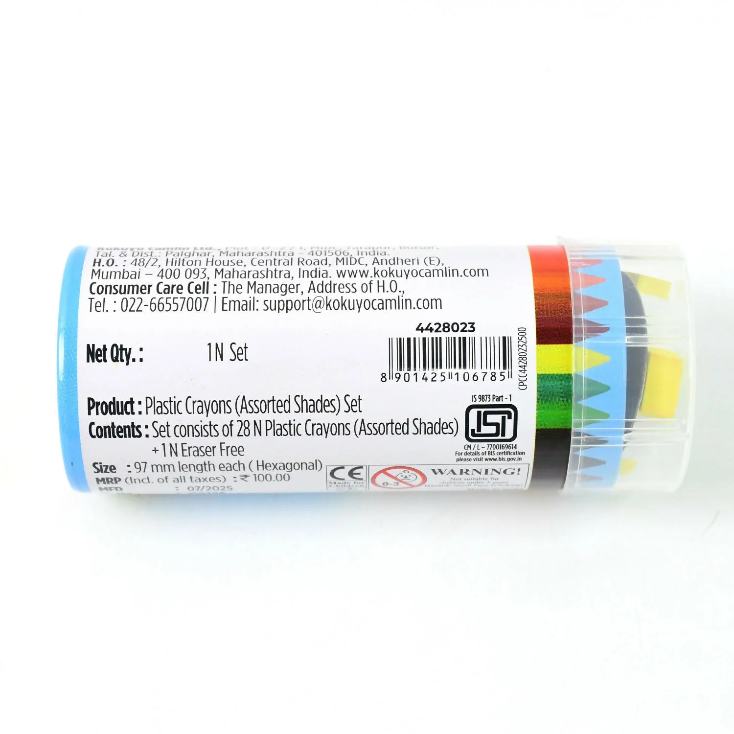 The Camel Plastic Crayons Set by Kokuyo Camlin is a vibrant and versatile colouring kit that comes with 28 assorted shades and a free eraser. Designed with a smooth texture and stain-free formula, these crayons allow children and beginners to create bright, expressive artwork with ease. The crayons are hexagonal in shape for better grip and break-resistance, making them perfect for long hours of colouring. Packed in a durable cylindrical box, the set is convenient to carry and store, ensuring colours stay safe and organised.