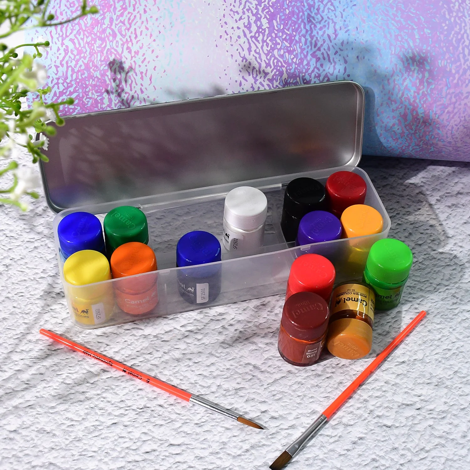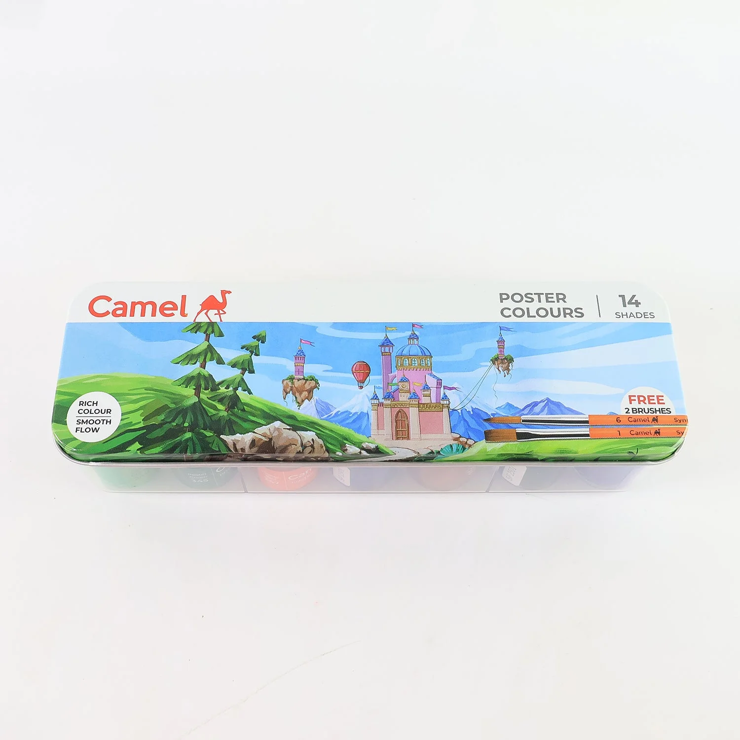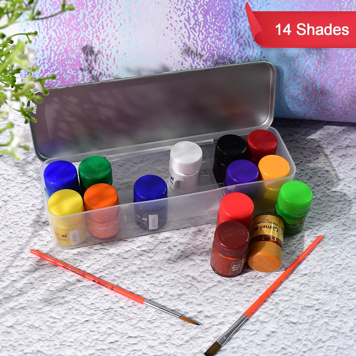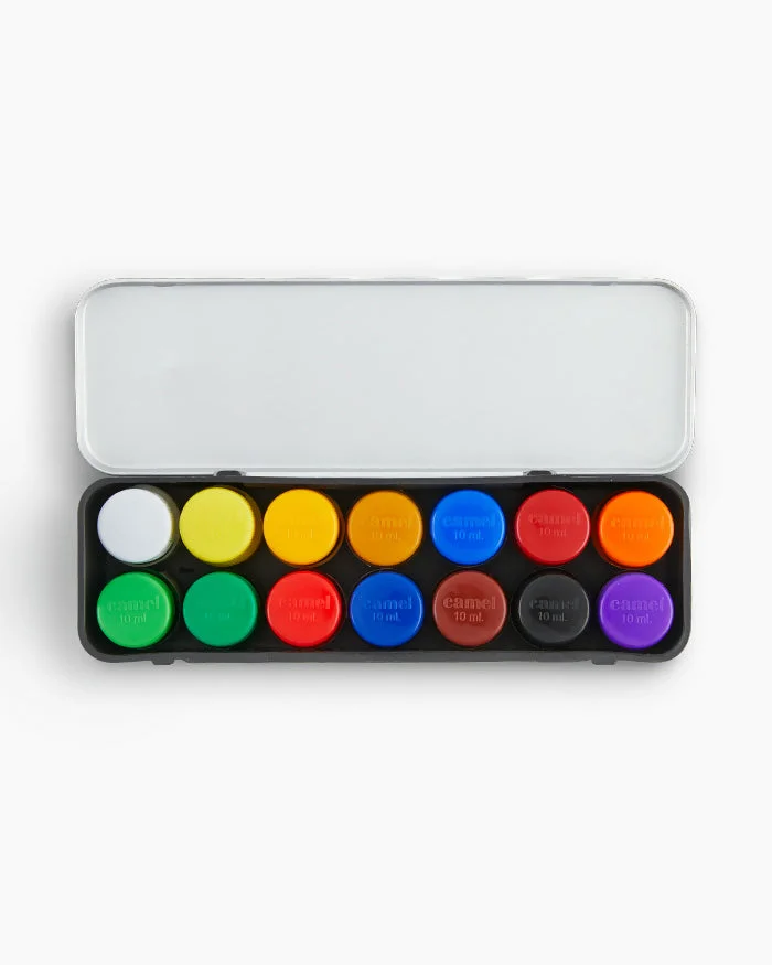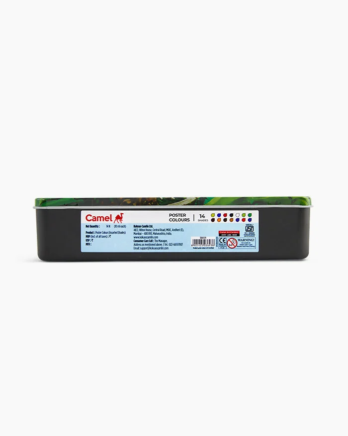 Camel Poster Colours are specially designed for students, offering vibrant shades, smooth flow, and excellent coverage for creative projects. This 14-shade set comes in a durable metal box, making it convenient to carry and store. Each 10 ml bottle contains rich pigments that blend easily, dry evenly, and provide long-lasting brightness on paper and board. Ideal for poster making, school projects, hobby crafts, and art assignments, these poster colours ensure consistency and professional results.