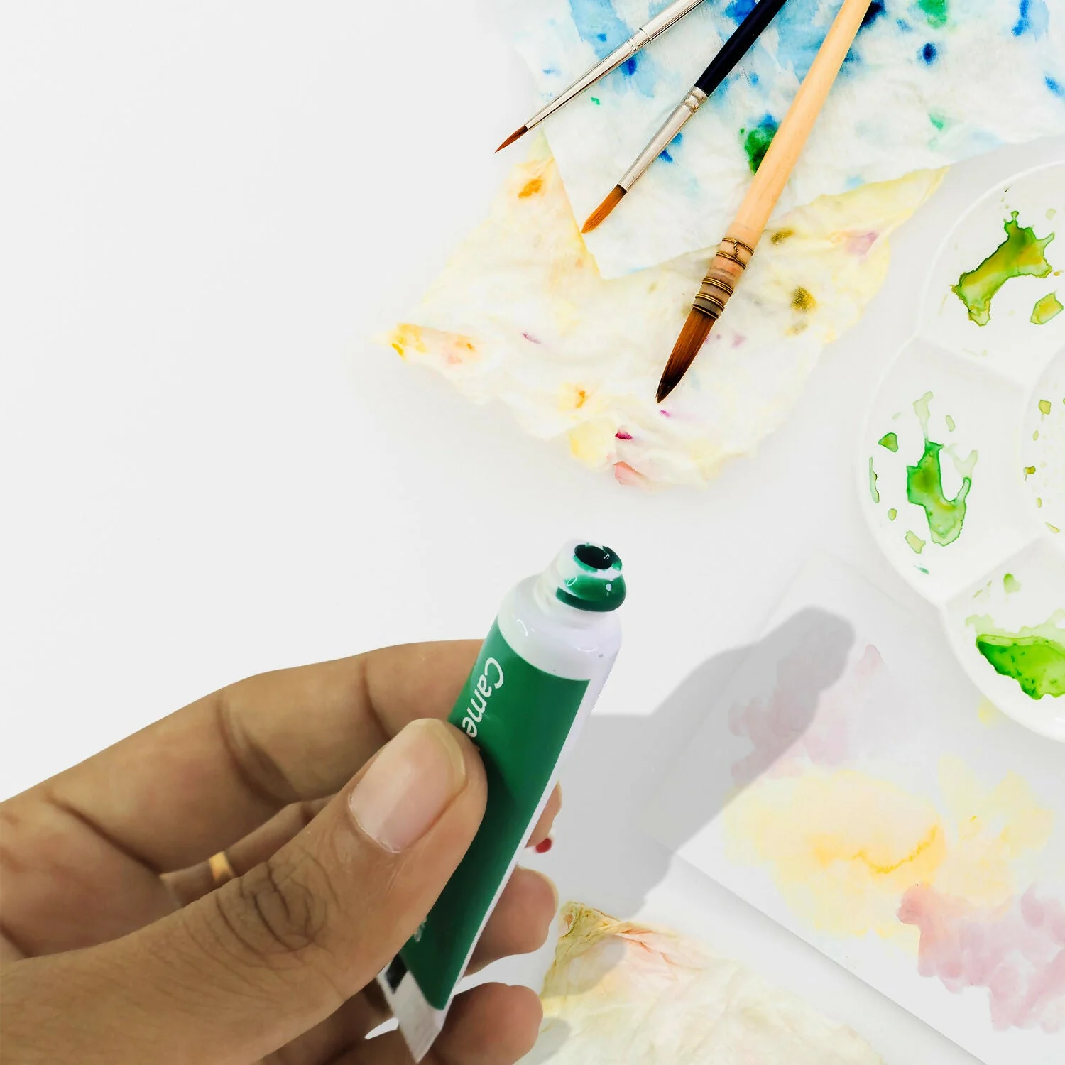 Camel Water Colour Tubes offer bright, student-friendly colours with a smooth, consistent flow. The water-based formula blends easily for washes, gradients, and layering, making it perfect for school projects and hobby painting. Compact tubes are easy to squeeze and store neatly in the tray.