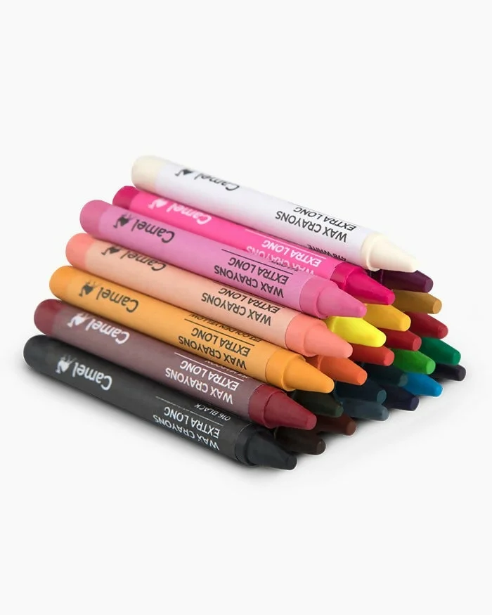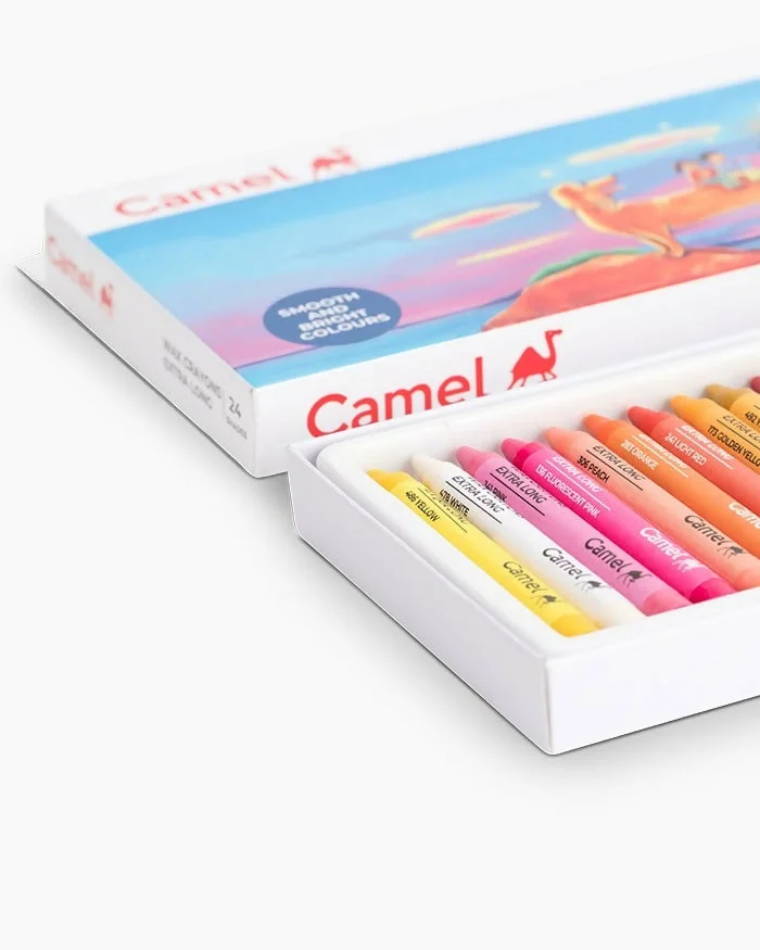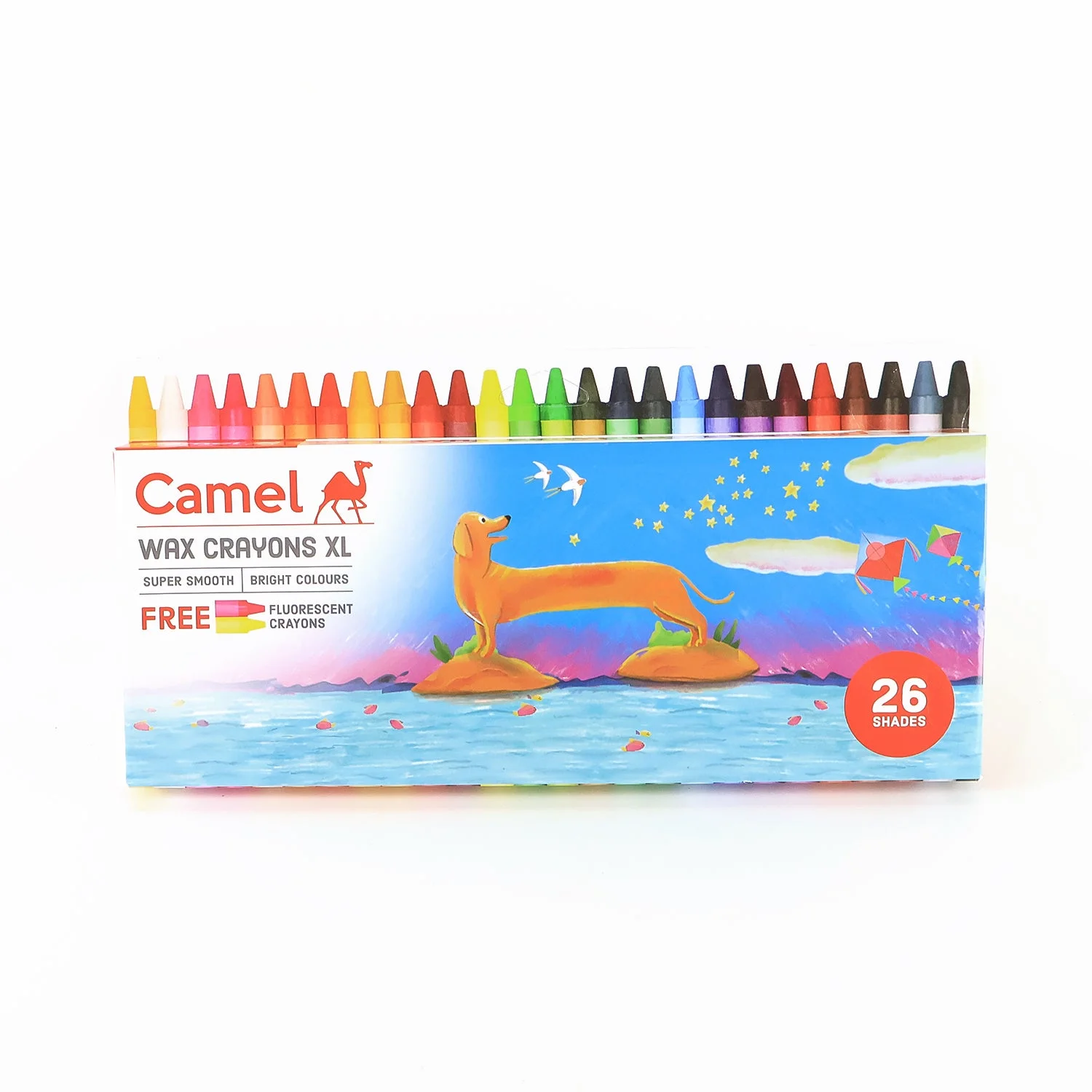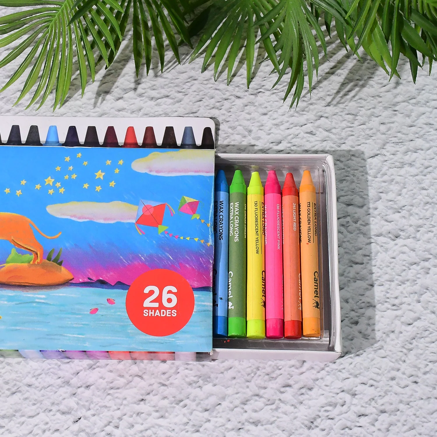 Camel Wax Crayons Extra Long – 26 Vibrant Shades Smooth & Break-Resistant Colouring Set for Kids, Students, and Artists
