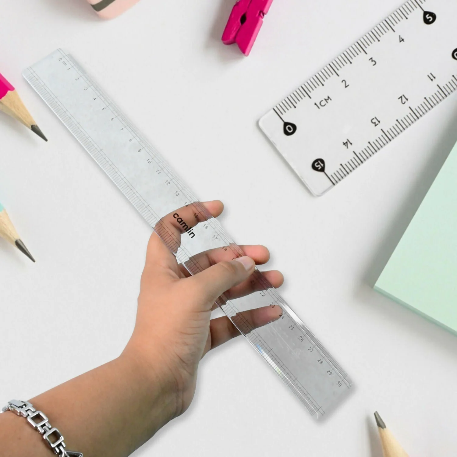 The Camlin 30 cm Transparent Plastic Scale is a high-quality measuring instrument designed for accuracy, durability, and everyday convenience. With crystal-clear visibility and precise markings in both centimeters and millimeters, this scale ensures error-free measurements. Its strong, flexible, and non-breakable body makes it long-lasting, while the smooth edges provide safety during use. Ideal for students, teachers, engineers, architects, and office professionals, this scale is a must-have stationery item for precise drawing, technical work, and measurement needs.