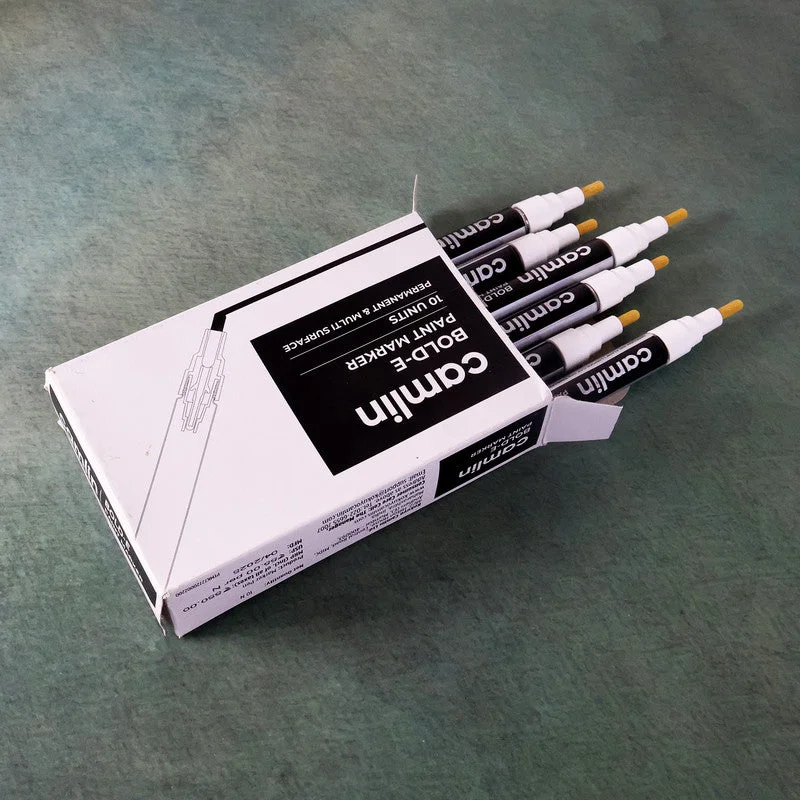 The Camlin Bold-E Paint Marker White Pack of 10 is designed for bold, opaque, and permanent marking on smooth and rough surfaces, making it highly useful for industrial, professional, and creative applications. With its vibrant white ink, this marker delivers high visibility on dark and coloured surfaces such as metal, glass, plastic, wood, ceramic, cardboard, and stone. The refillable design ensures long-lasting use while reducing waste, and the durable fiber tip provides consistent ink flow with smooth application. Quick-drying, smudge-proof, and water-resistant, these markers are ideal for heavy-duty marking, signage, labeling, and creative projects where strong visibility and permanence are essential.