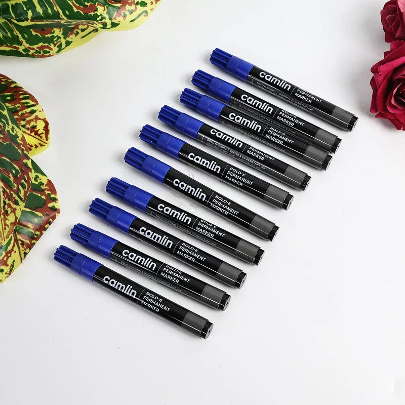 The Camlin Bold-E Permanent Marker Blue Pack of 10 is designed to deliver bold and vibrant markings on multiple surfaces including paper, cardboard, plastic, glass, metal, and wood, making it suitable for schools, offices, warehouses, and home use. With its rich blue ink, this marker ensures clear, smudge-free, and durable writing that stands out on all surfaces. The refillable design helps extend the lifespan of the markers while reducing waste, and the sturdy fiber tip guarantees smooth ink flow for consistent performance. Easy to handle with a comfortable grip, these markers are perfect for labeling, packaging, presentations, or creative tasks where bold visibility and permanence are essential.
