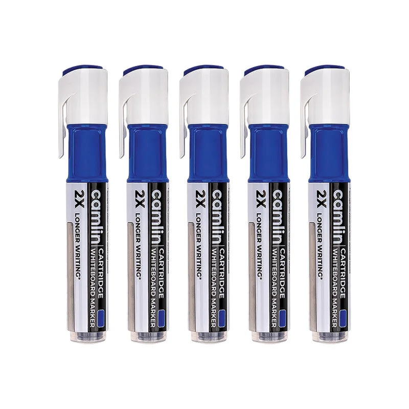 The Camlin Cartridge Whiteboard Marker in Blue color offers smooth, bold, and long-lasting writing performance with the convenience of an ink cartridge system. This pack of 5 markers ensures 2X longer writing compared to regular whiteboard markers, making them highly efficient and cost-effective. The quick-drying ink provides sharp and clear markings that are easy to erase without leaving stains or ghost marks, ensuring a clean whiteboard every time. Designed with a durable tip for consistent ink flow and bold visibility, these refillable markers are eco-friendly and reduce wastage by allowing cartridge replacements instead of discarding the entire marker. Perfect for classrooms, offices, training centers, and professional presentations, the Camlin Cartridge Whiteboard Markers combine reliability, convenience, and durability for seamless everyday use.
